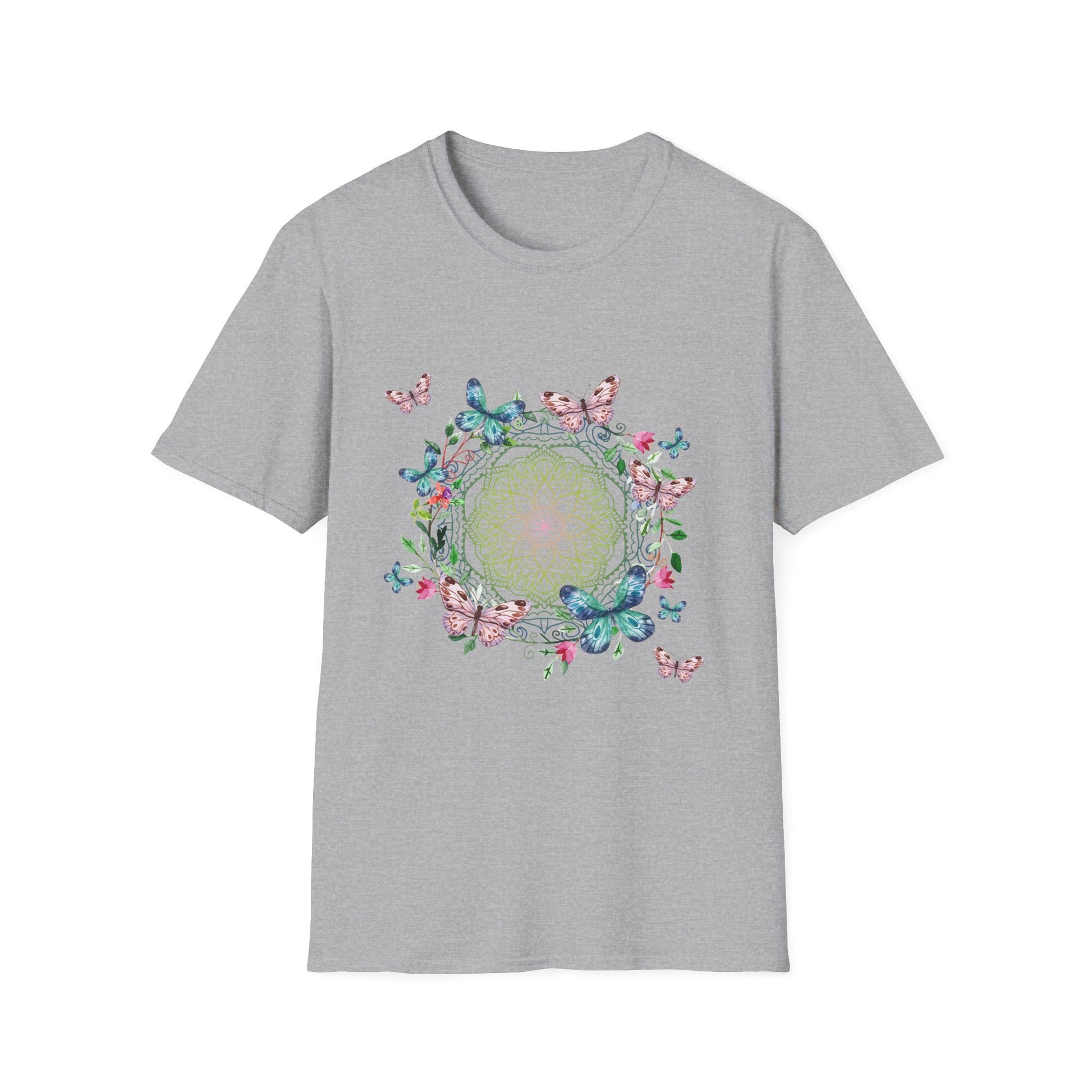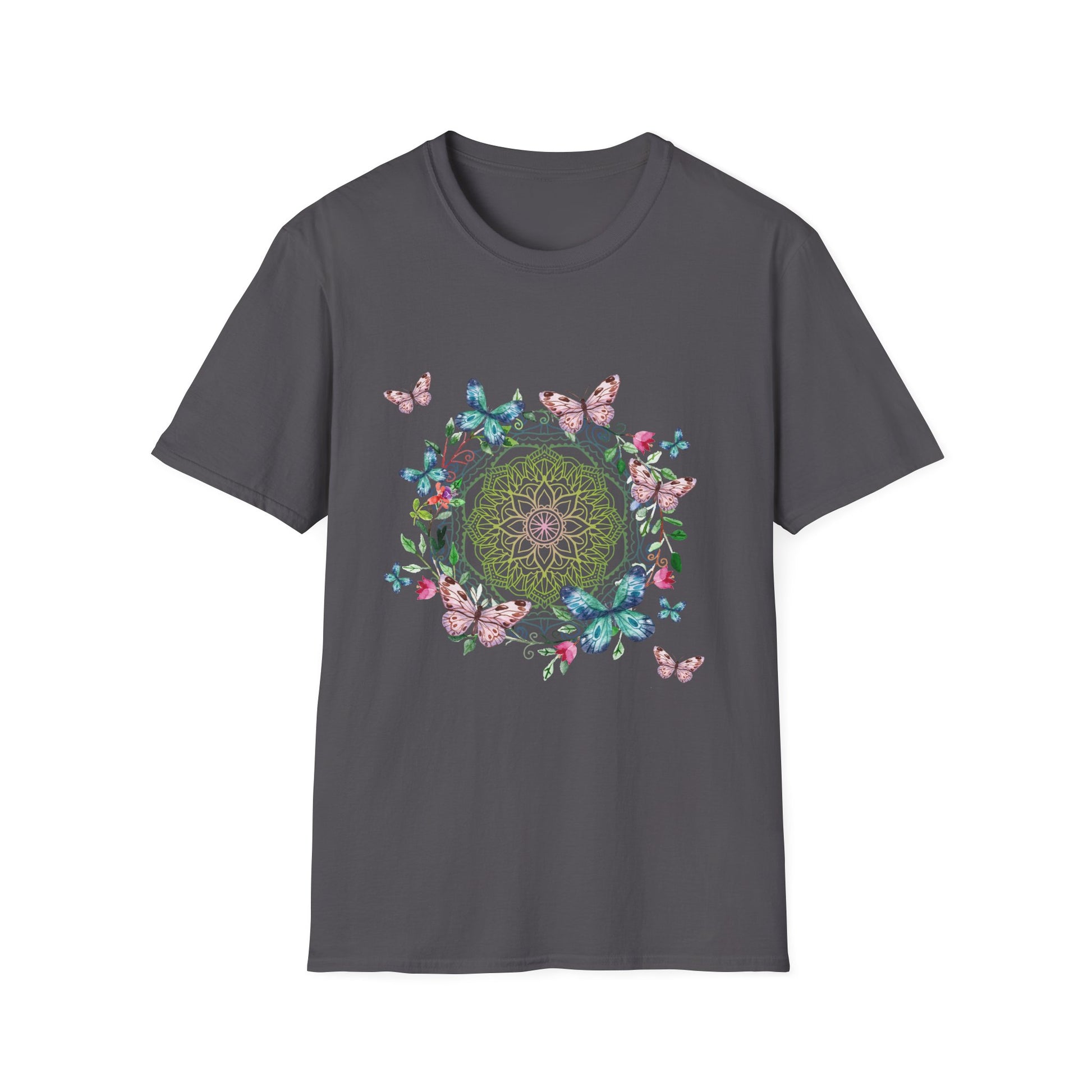 A soft and comfortable unisex t-shirt featuring a beautiful design of butterflies. This t-shirt is perfect for nature lovers and those who appreciate delicate beauty. It can be worn casually or dressed up for a fun and whimsical look. Ideal for spring and summer outfits, outdoor events, and nature-themed occasions.