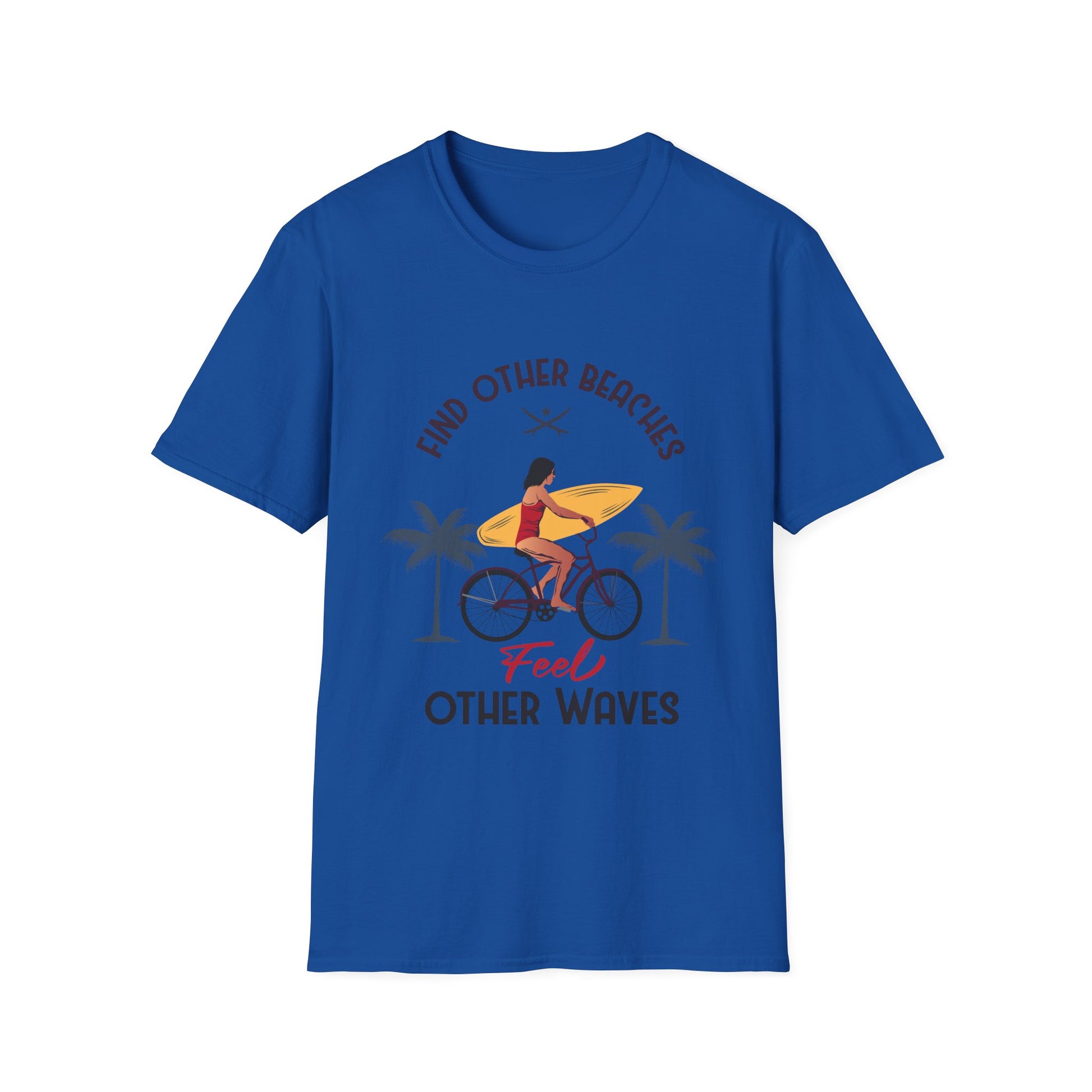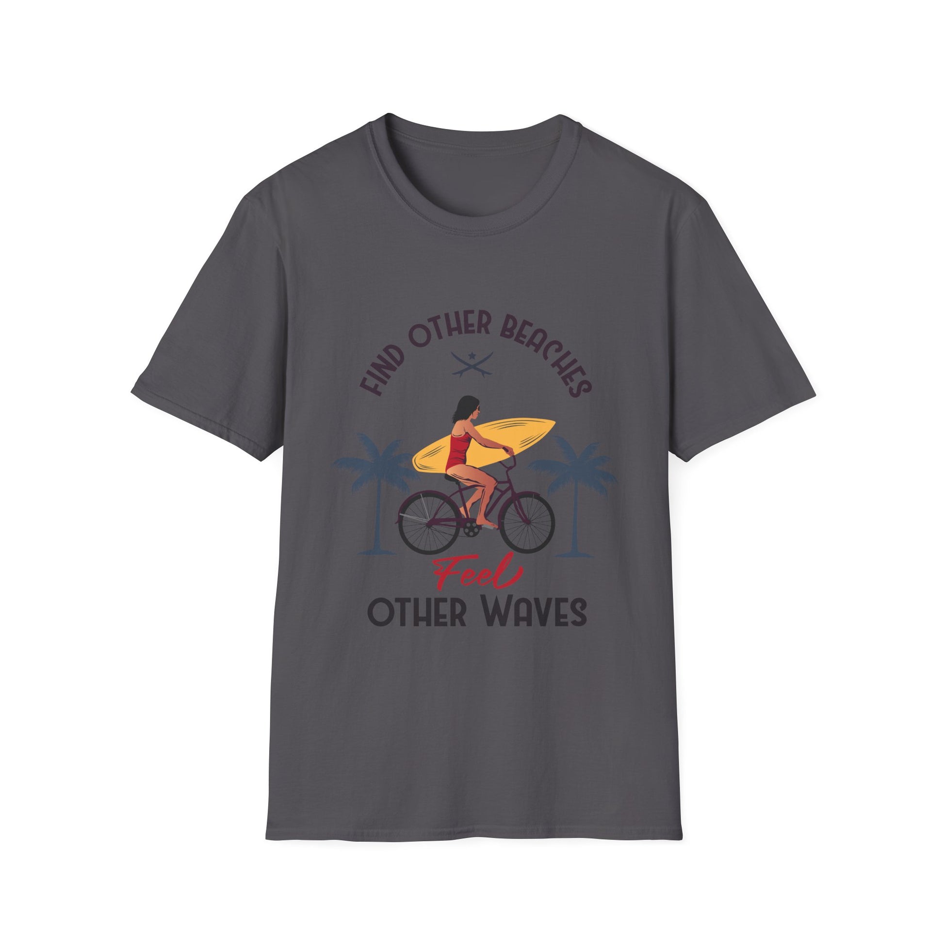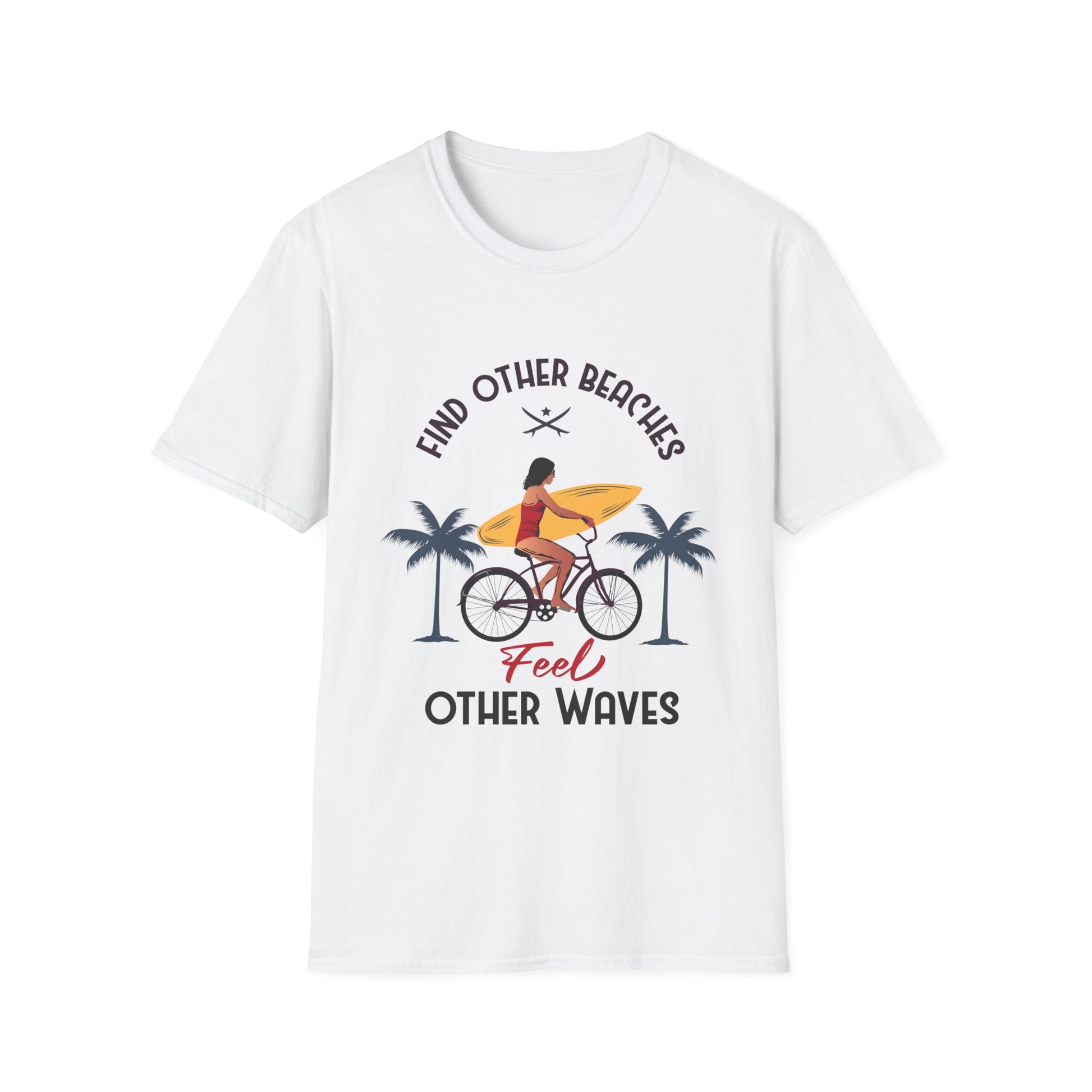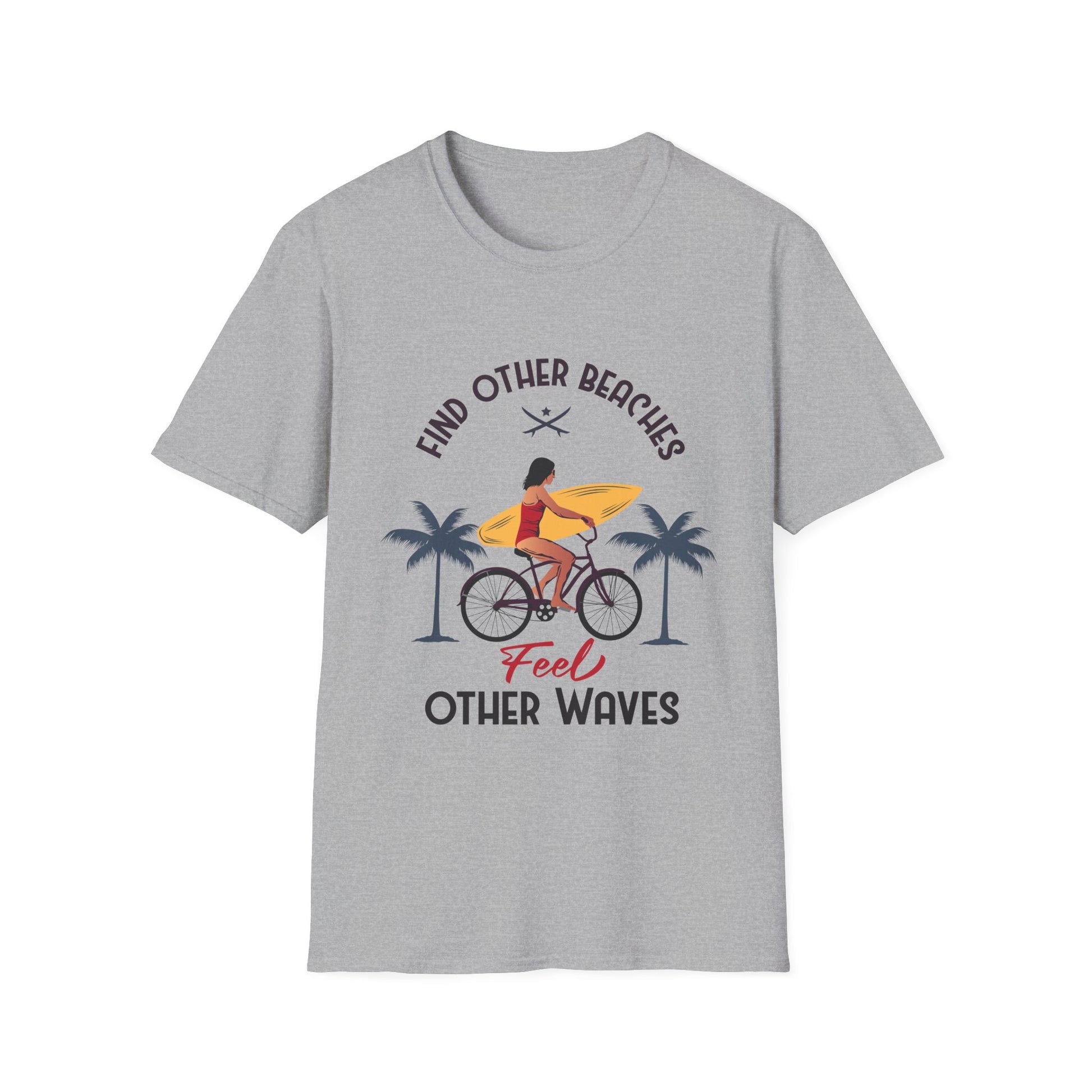 This T-Shirt featuring the phrase 'Find Other Beaches and Feel Other Waves' exudes a calming and adventurous beach vibe. Perfect for beach lovers, surfers, and travelers seeking new experiences. Ideal for summer vacations, beach trips, and casual outings.