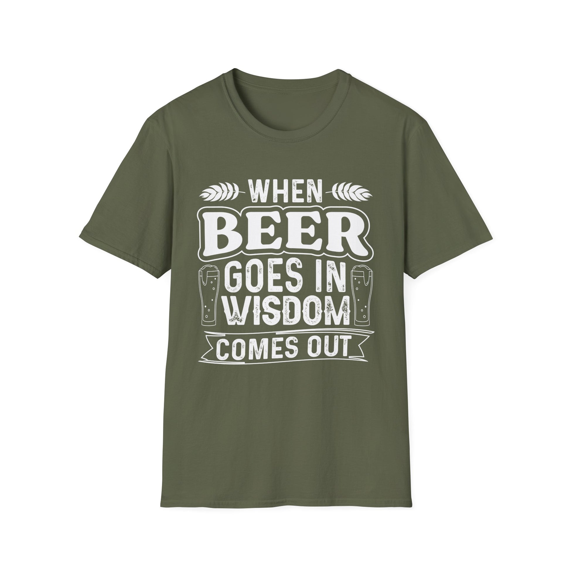 This soft and comfortable T-Shirt is perfect for beer lovers. With the fun design 'When Beer Goes in', it exudes a casual and laid-back vibe, making it ideal for everyday wear or lounging around. Great for beer enthusiasts or as a gift for someone who enjoys a good brew. Perfect for wearing to beer festivals, parties, or casual hangouts with friends.