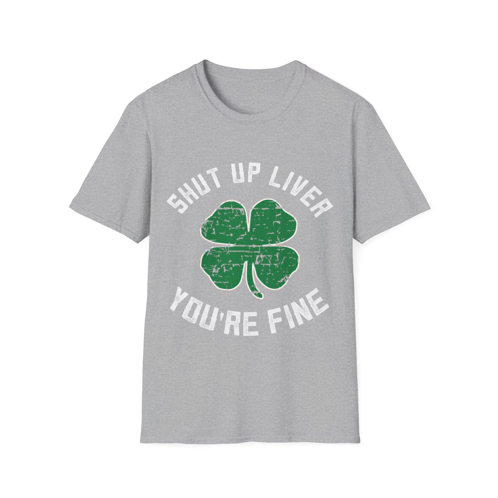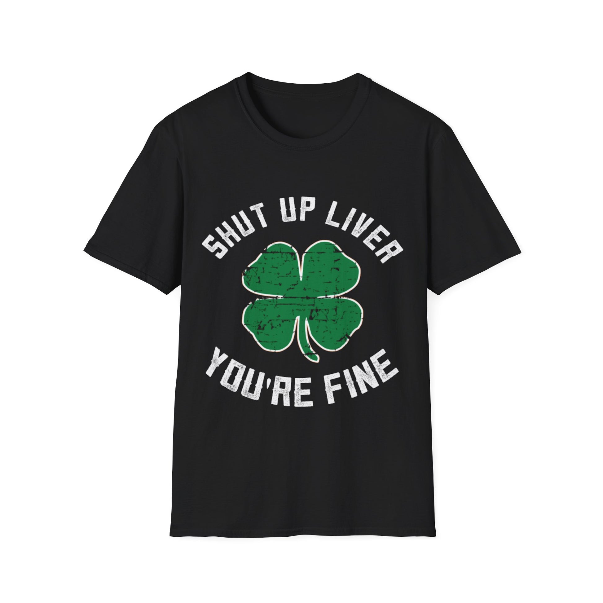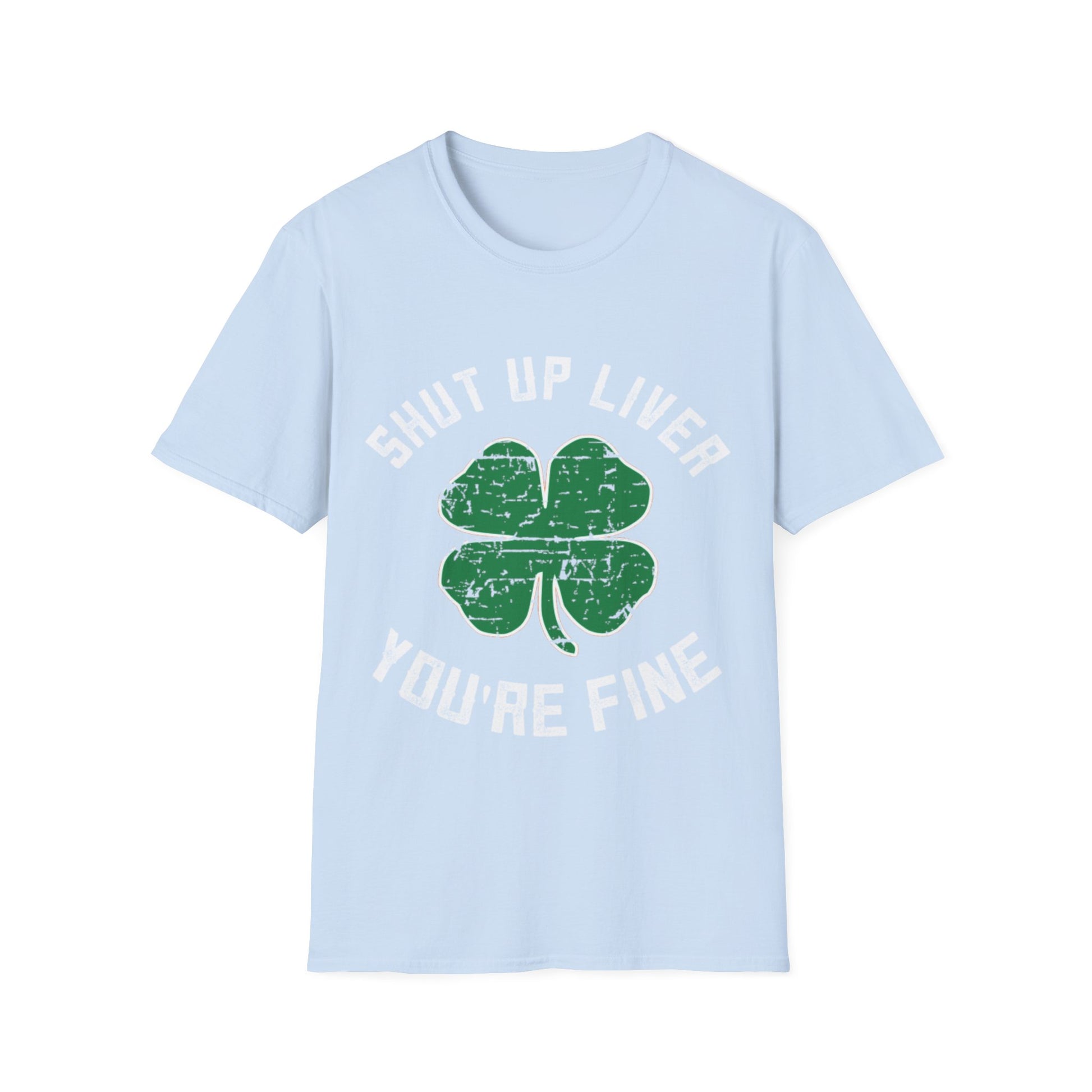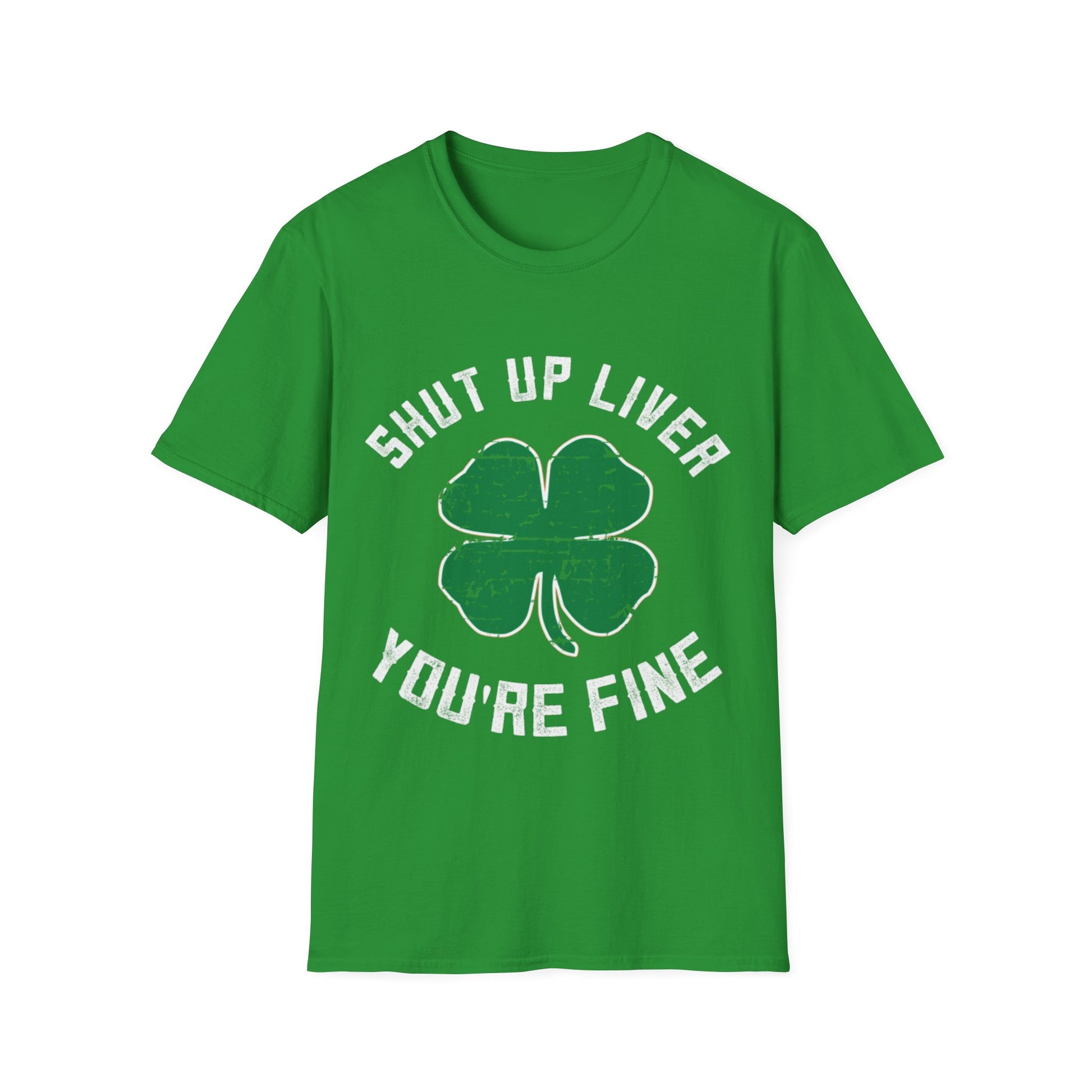 This Shut Up Liver You're Fine T-Shirt exudes a fun and carefree vibe, perfect for those who enjoy a good laugh and a casual style. It is a great addition to your wardrobe, ideal for parties, barbecues, and casual hangouts with friends. This t-shirt is relevant for St. Patrick's Day, birthdays, and any occasion where light-hearted humor is appreciated. It is designed for adults seeking comfort and style in their everyday wear.