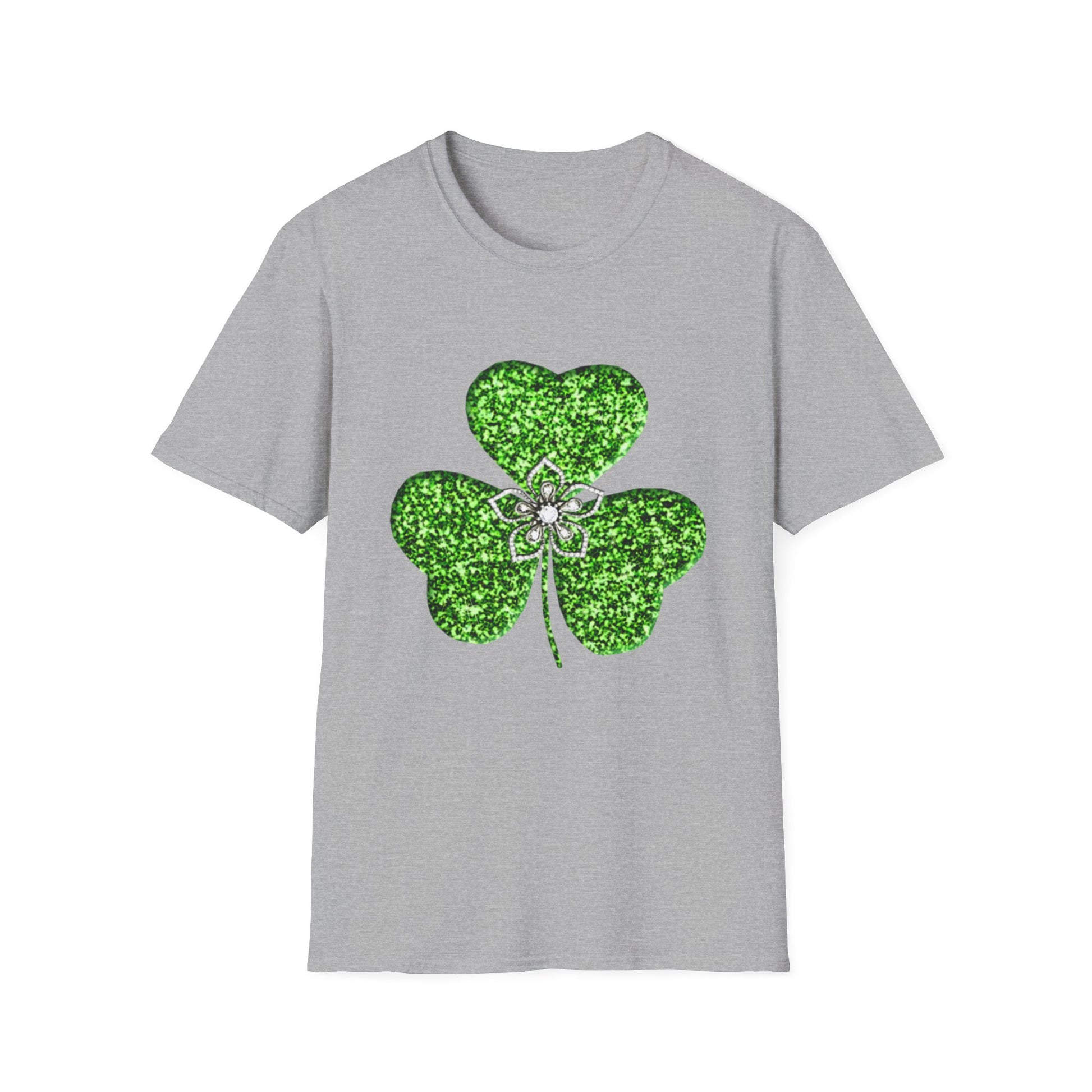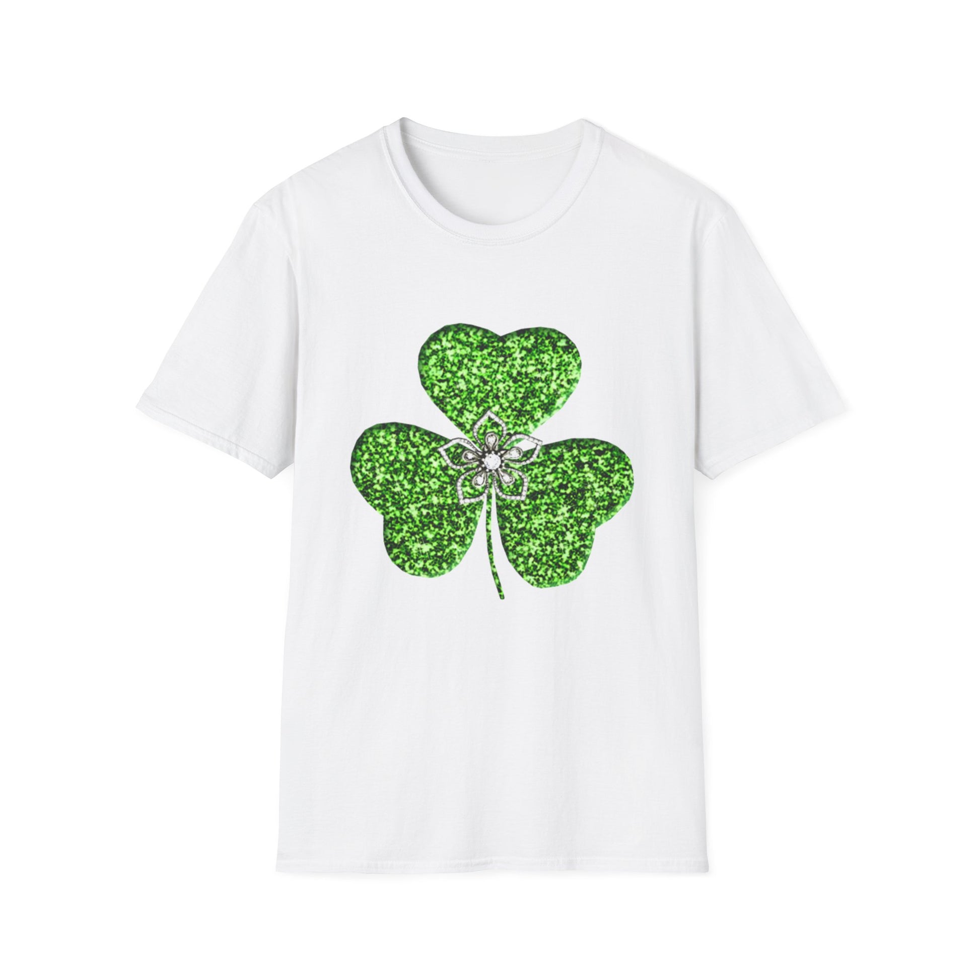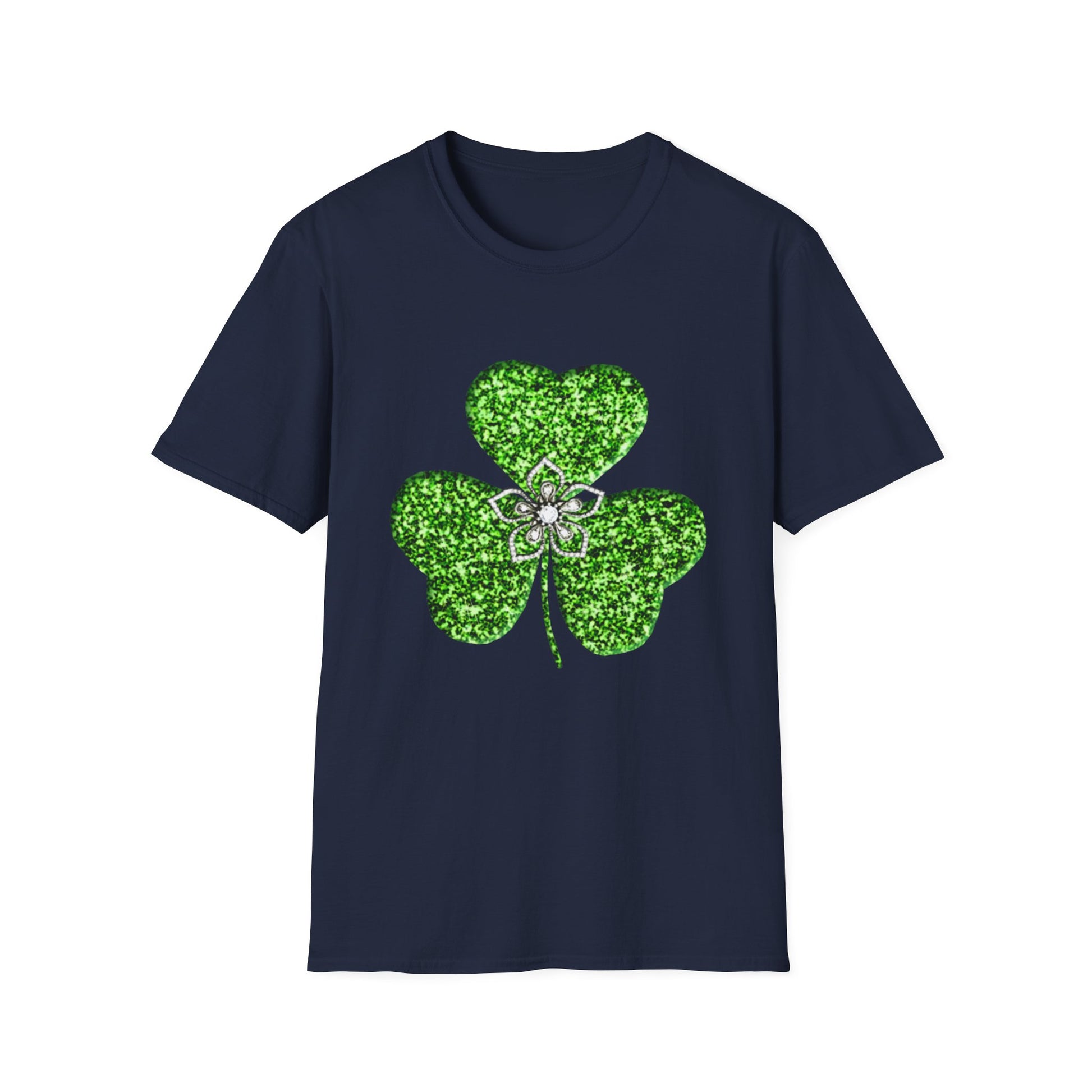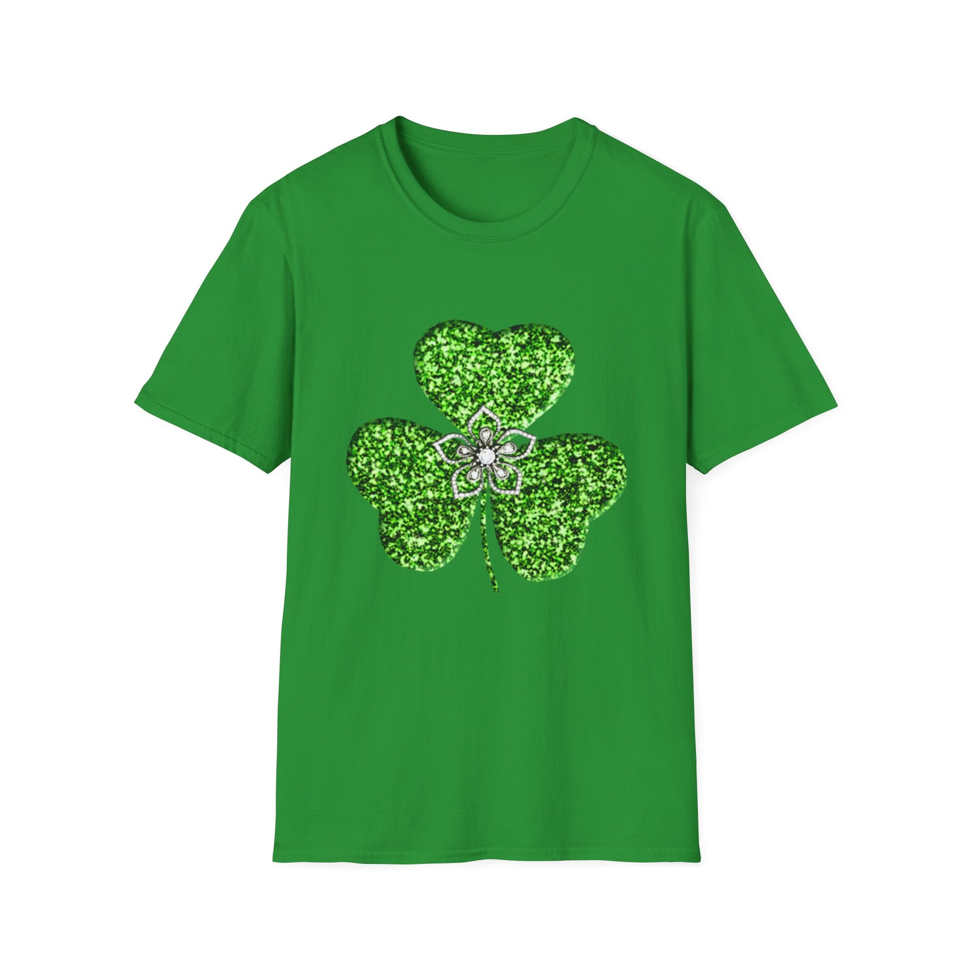This T-Shirt features a glitter shamrock design, adding a festive touch to your wardrobe. Perfect for St. Patrick's Day celebrations or for anyone who loves a bit of sparkle in their outfit. The classic fit and crew neckline make it versatile for any occasion.