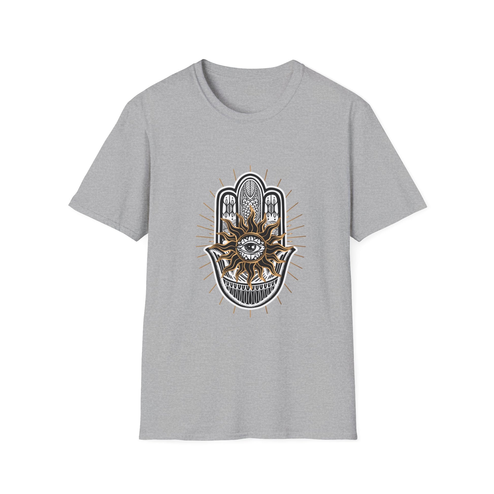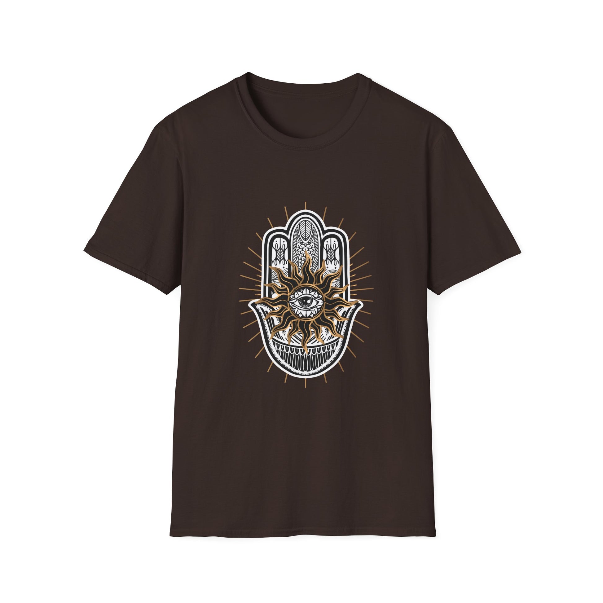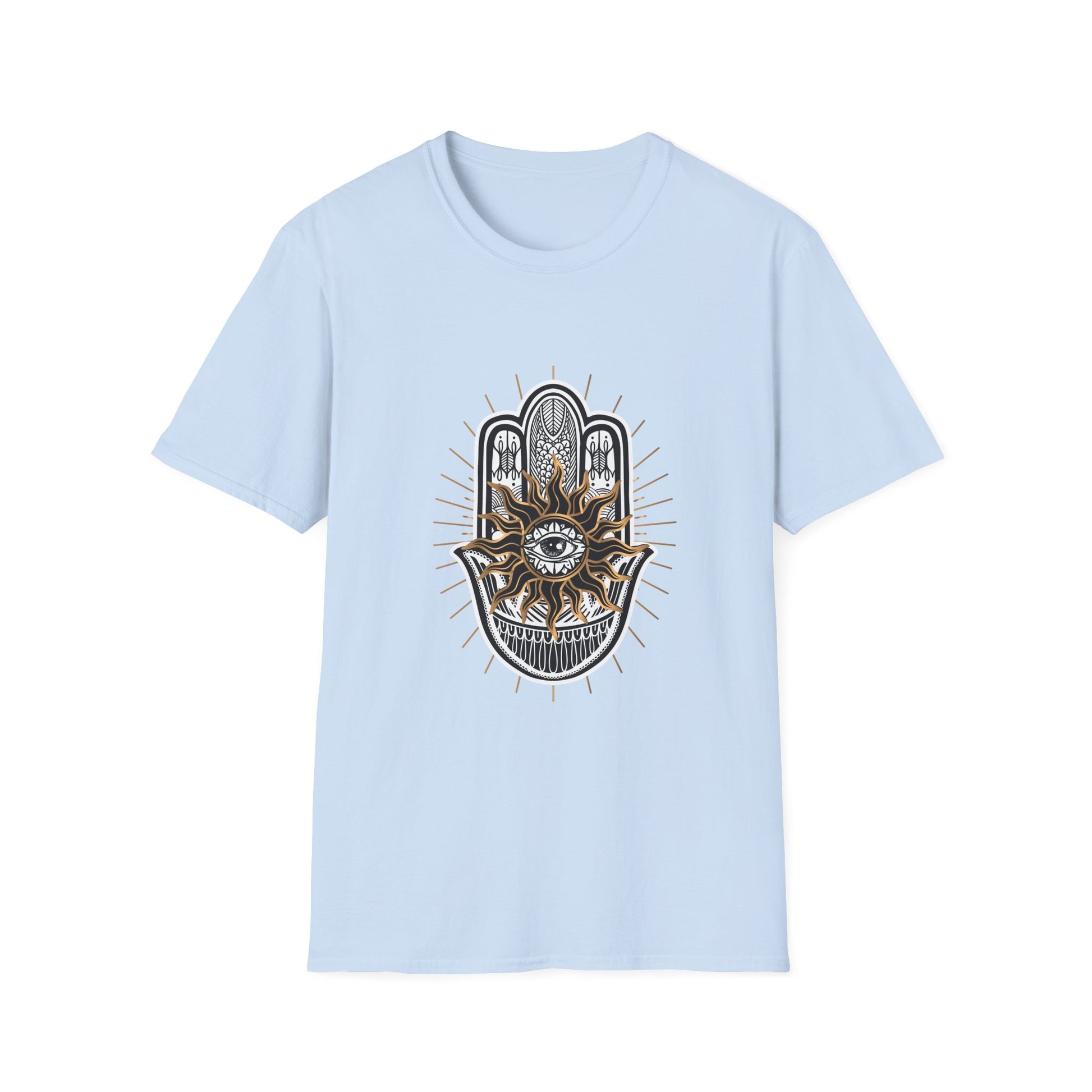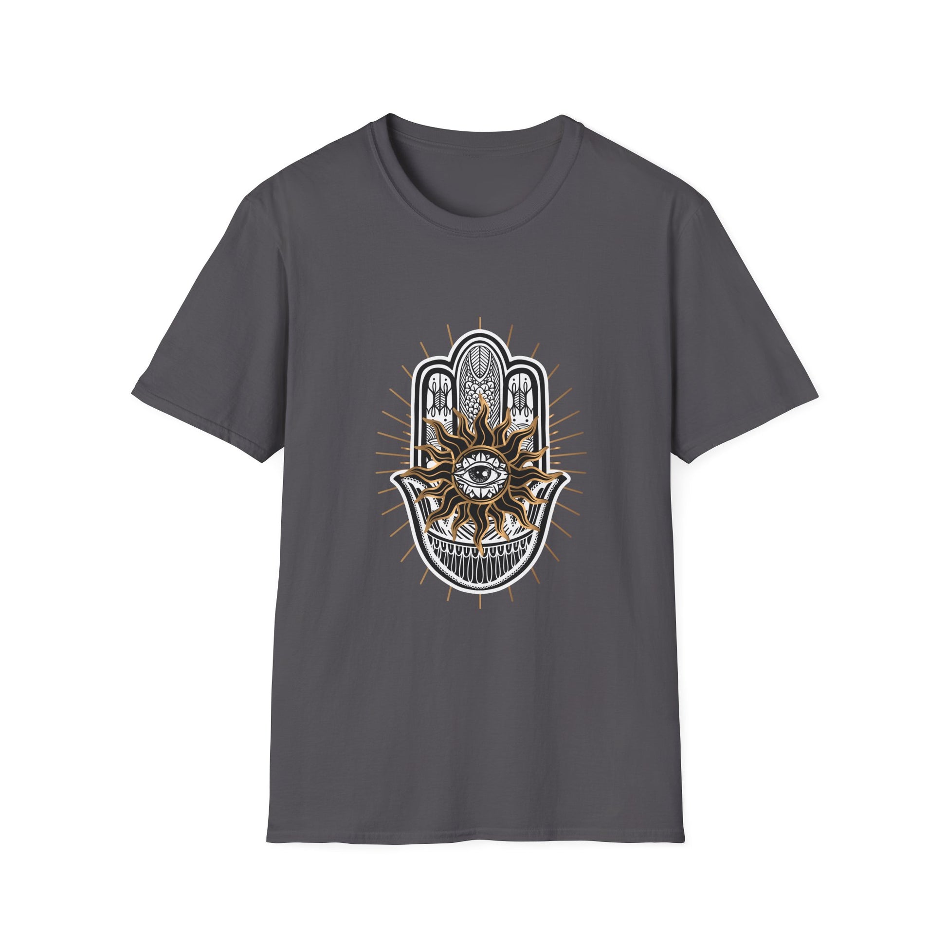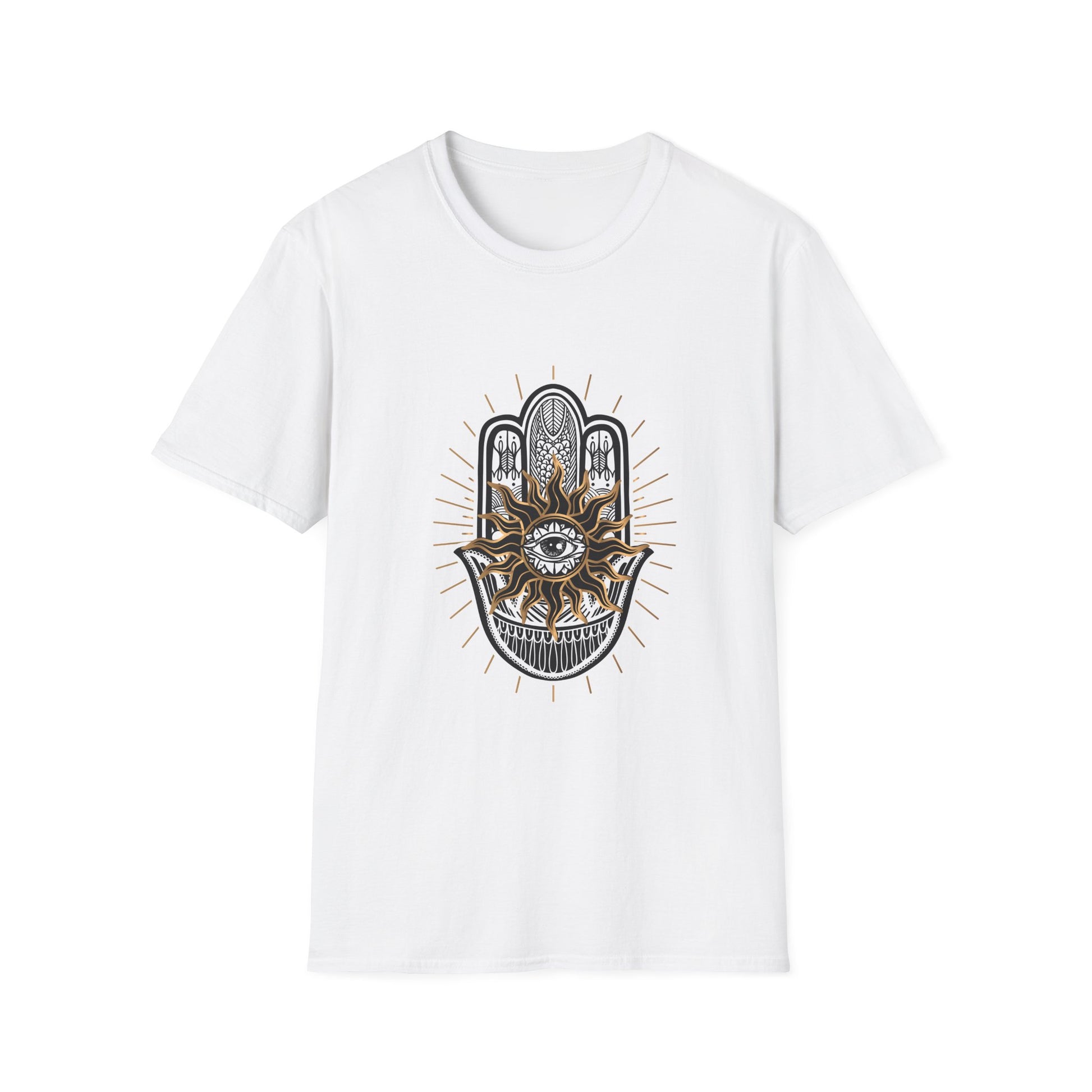 A trendy unisex softstyle T-shirt featuring the intricate design of Hamsa Hand, perfect for casual wear and spiritual enthusiasts. The lightweight fabric and classic fit provide a comfortable feel suitable for year-round wear. Ideal for those looking to add a touch of mysticism to their daily wardrobe or seeking a thoughtful gift for spiritual holidays and occasions.