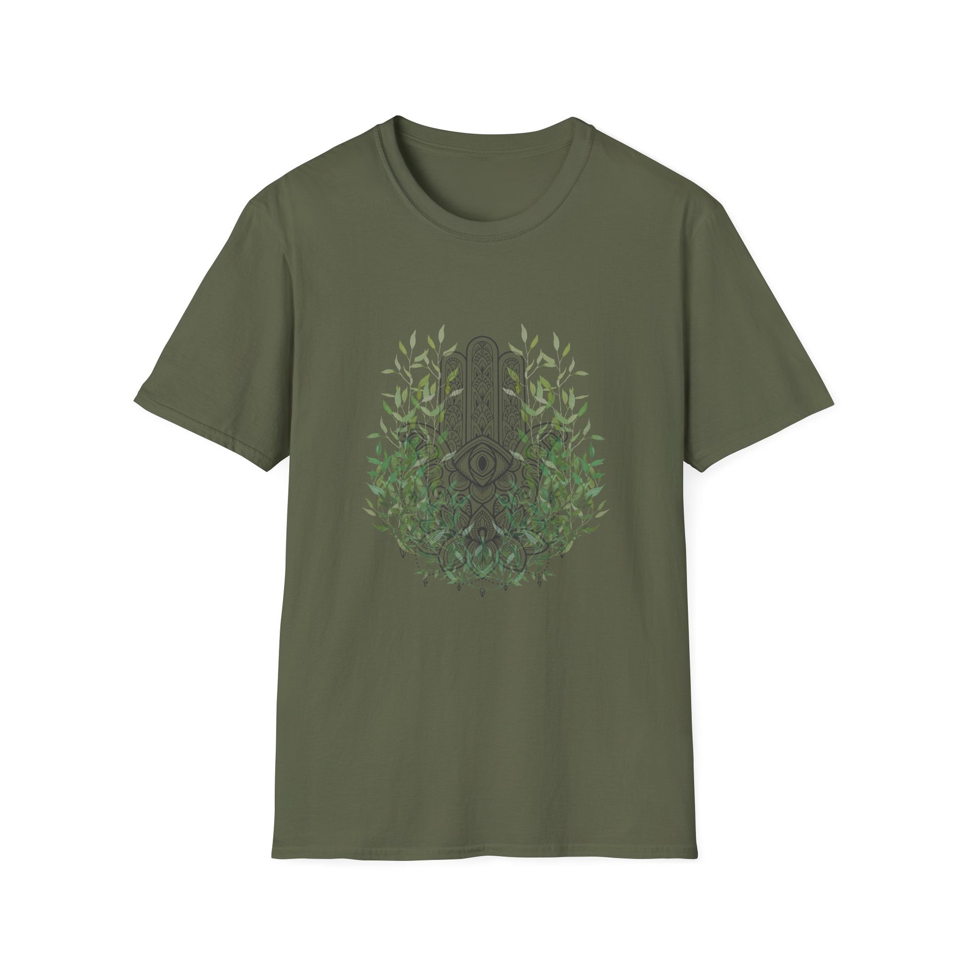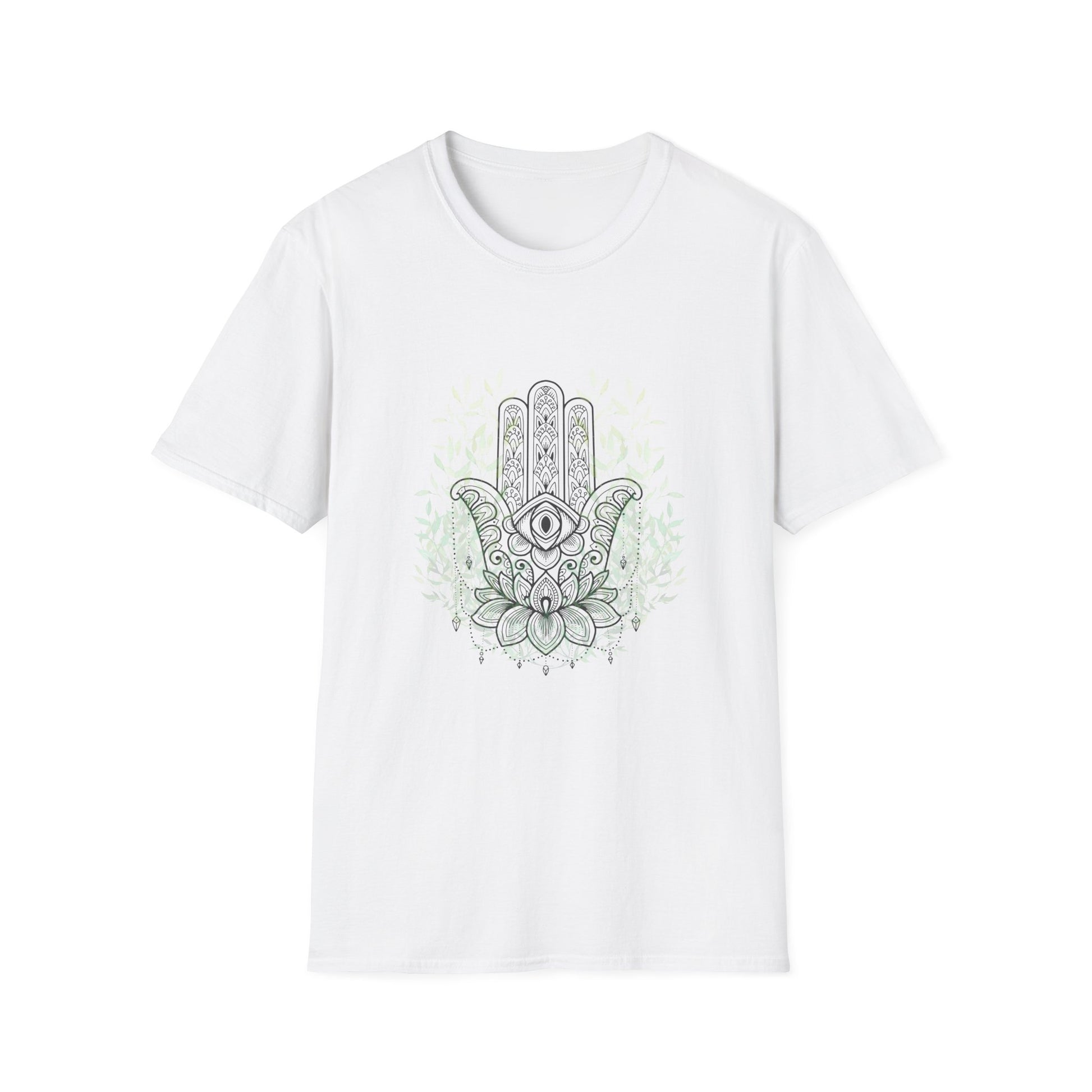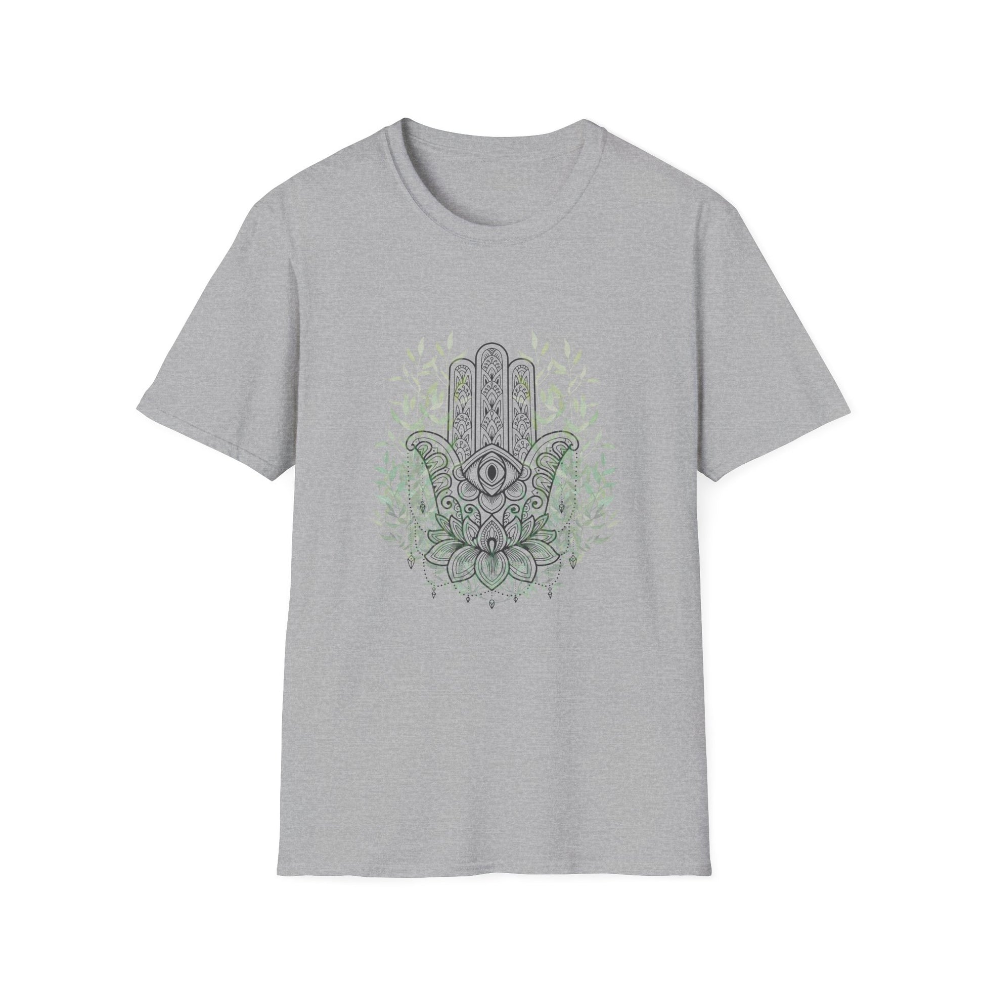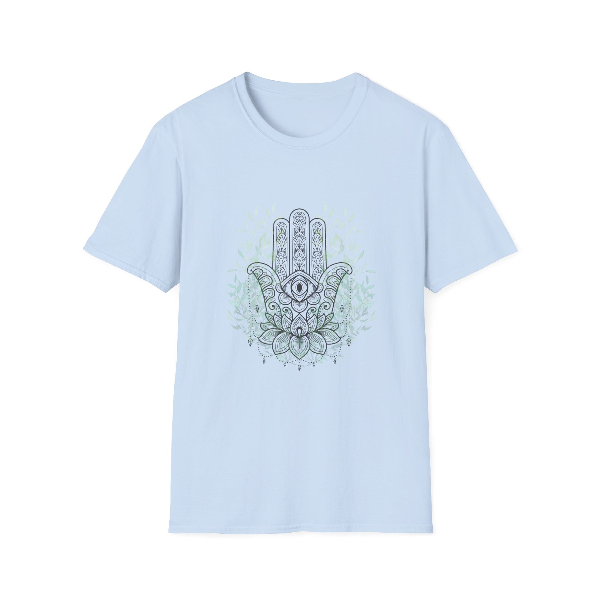 This T-Shirt features a Hamsa Hand design, adding a touch of spirituality and protection to your wardrobe. Perfect for those who appreciate symbolic jewelry and love to express their beliefs through fashion. Ideal for wearing on casual days or special occasions, this tee is a versatile piece that can be styled in various ways. Relevant for those celebrating cultural events or looking for unique gifts for spiritual friends.