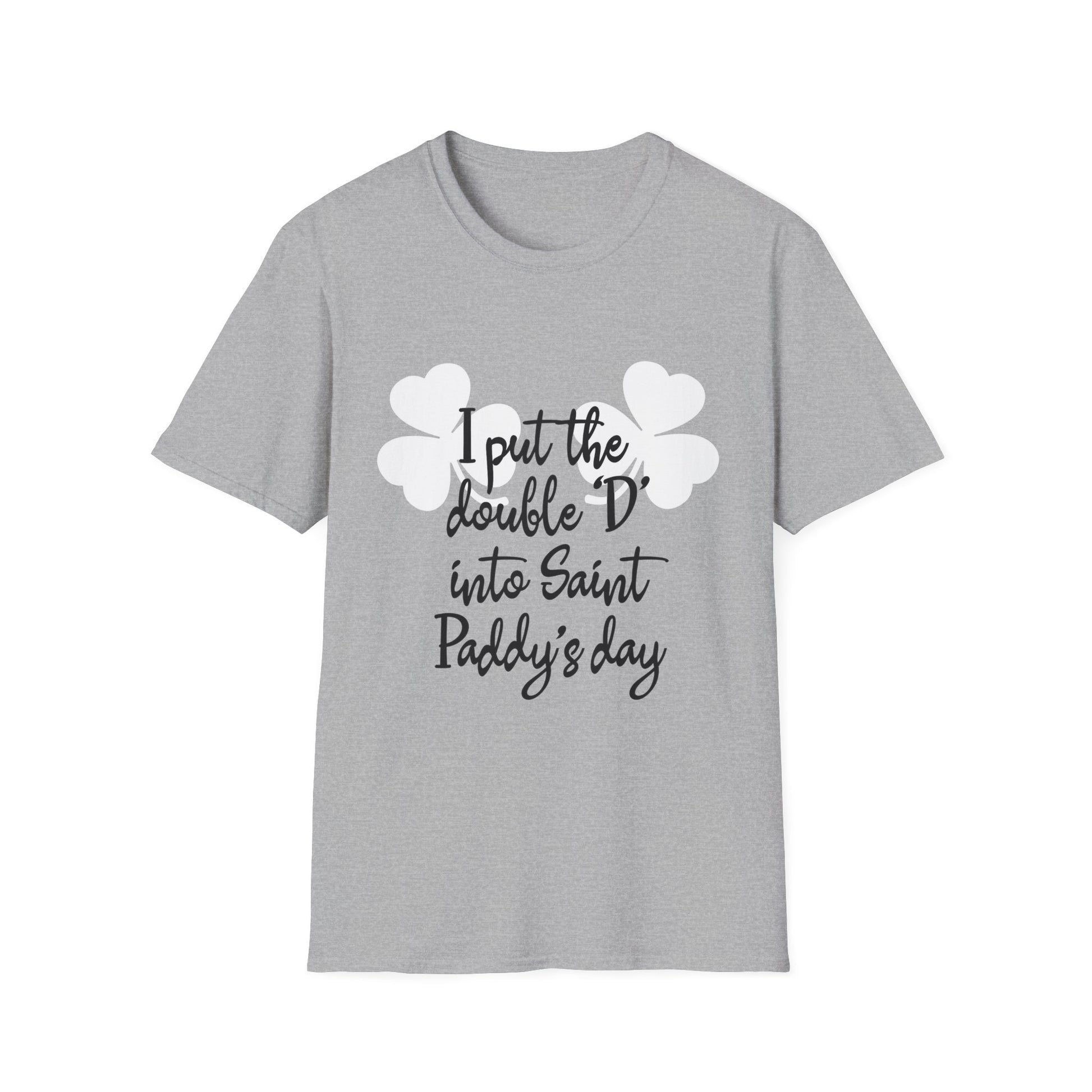 This St Paddy's Day-themed t-shirt is perfect for those looking to add a fun and festive touch to their wardrobe. Made from soft and durable ring-spun cotton, this tee provides all-day comfort and style. The Double "D" design adds a playful twist to the holiday celebrations, making it a great choice for anyone looking to embrace the St. Patrick's Day spirit.