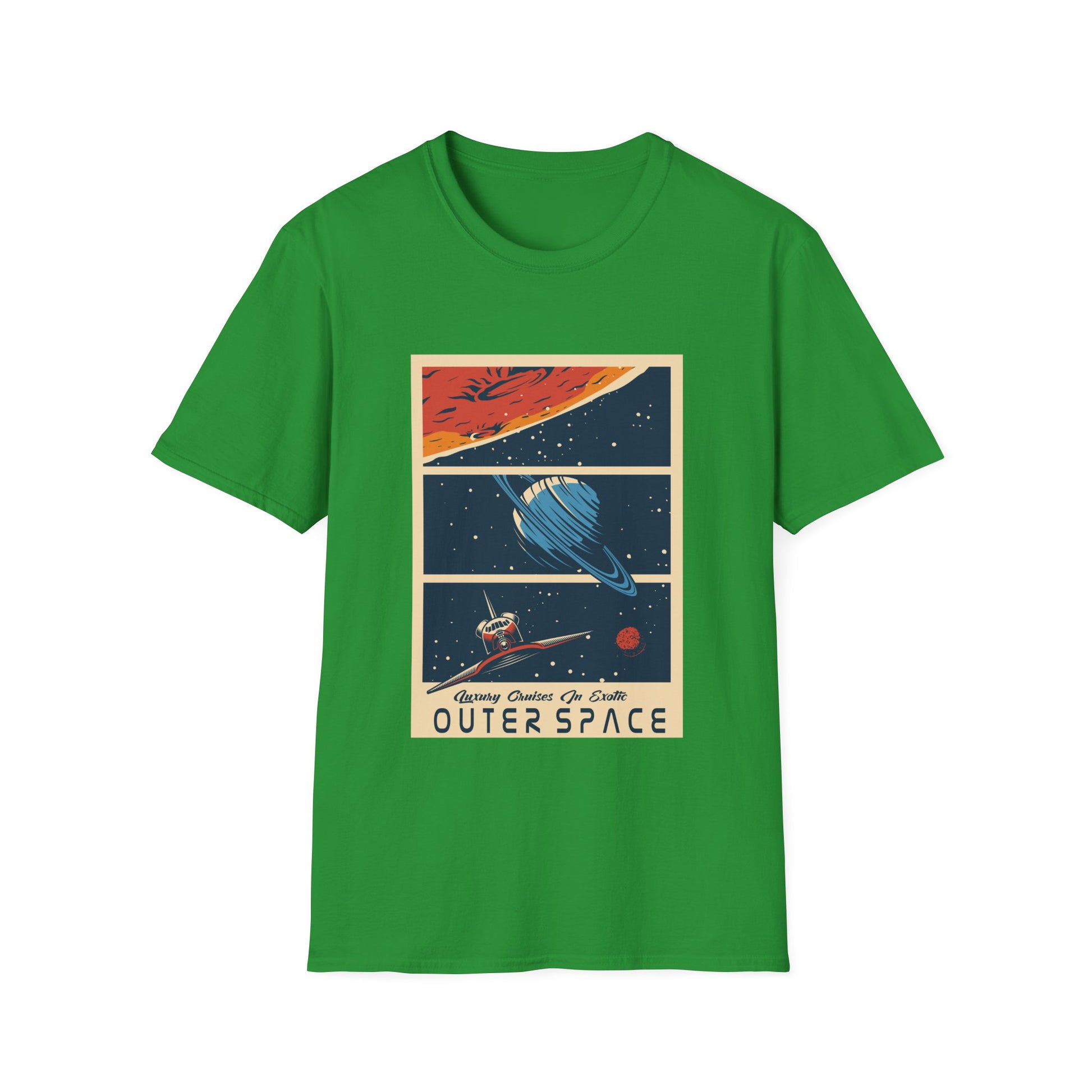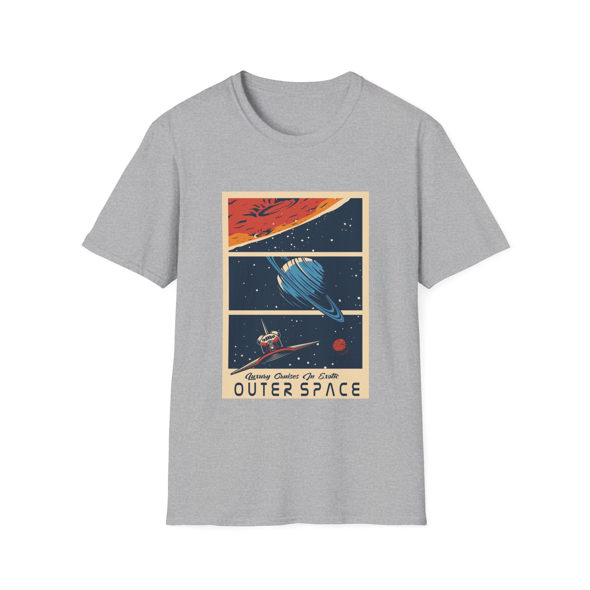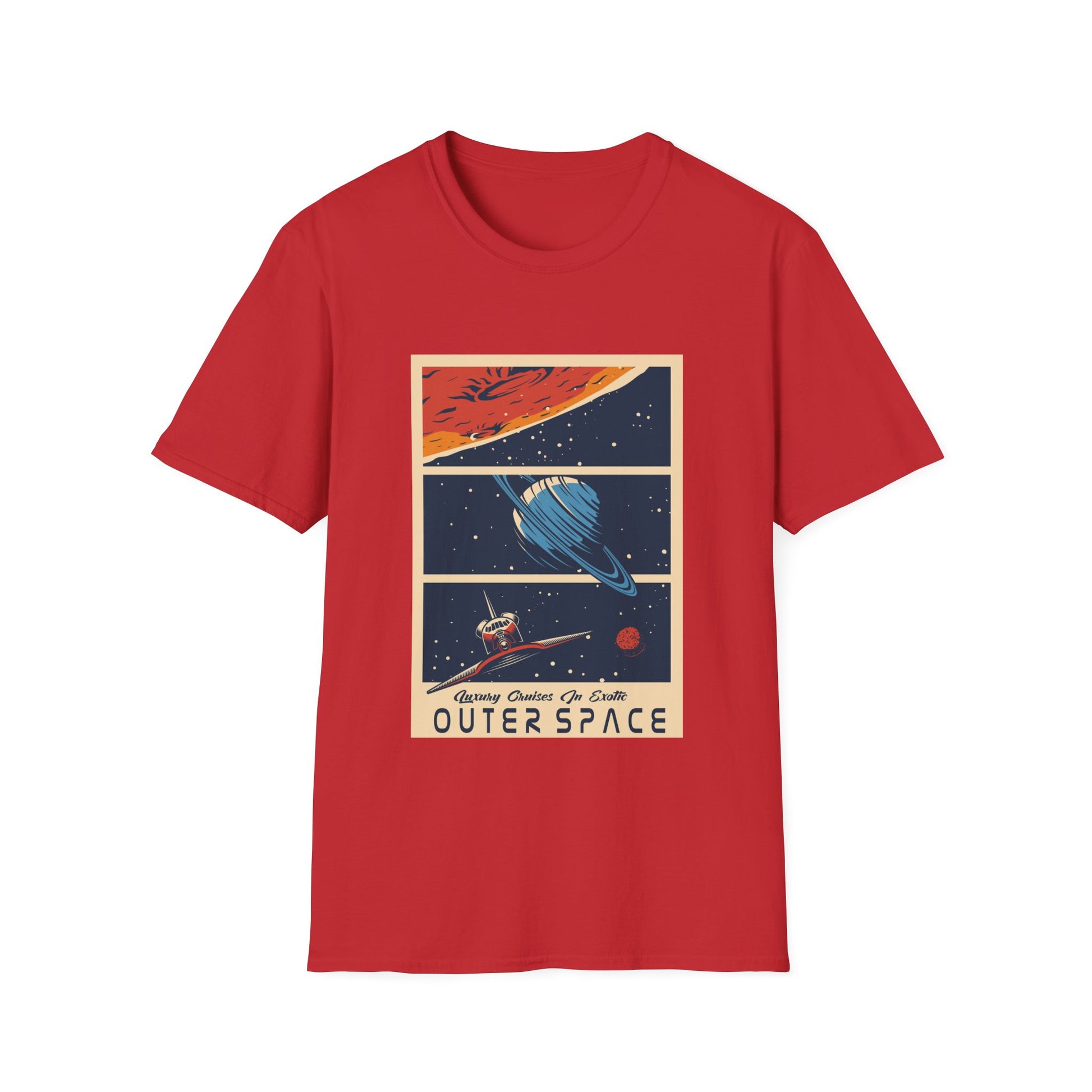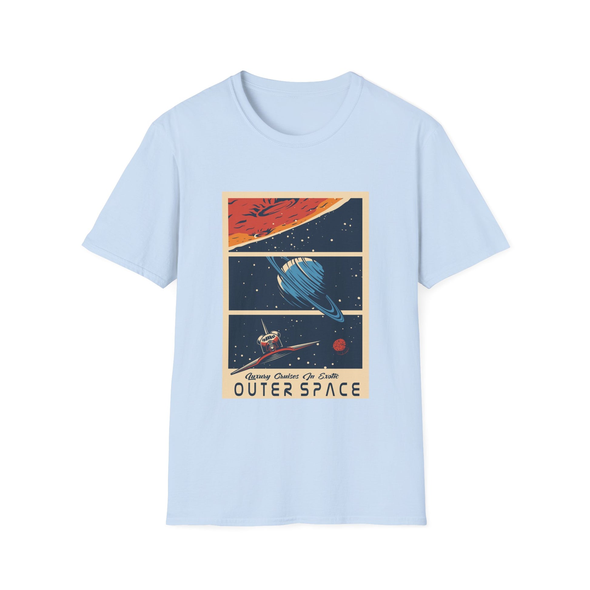 Experience luxury cruises in exotic space with this soft and comfortable unisex T-Shirt. Perfect for those who love adventure and dream of exploring new frontiers. Ideal for space enthusiasts and science fiction fans. Relevant for birthdays, holidays, and special occasions.
