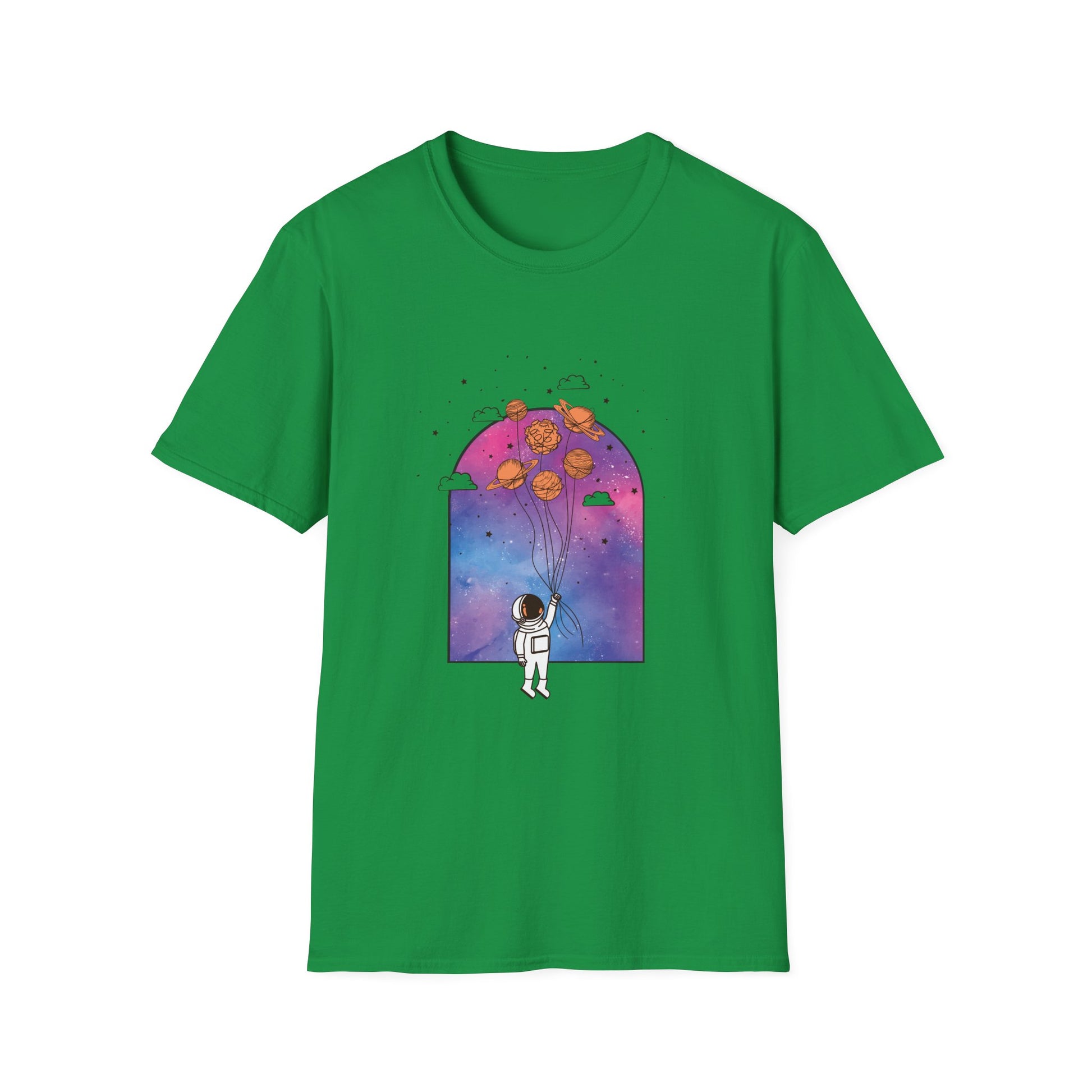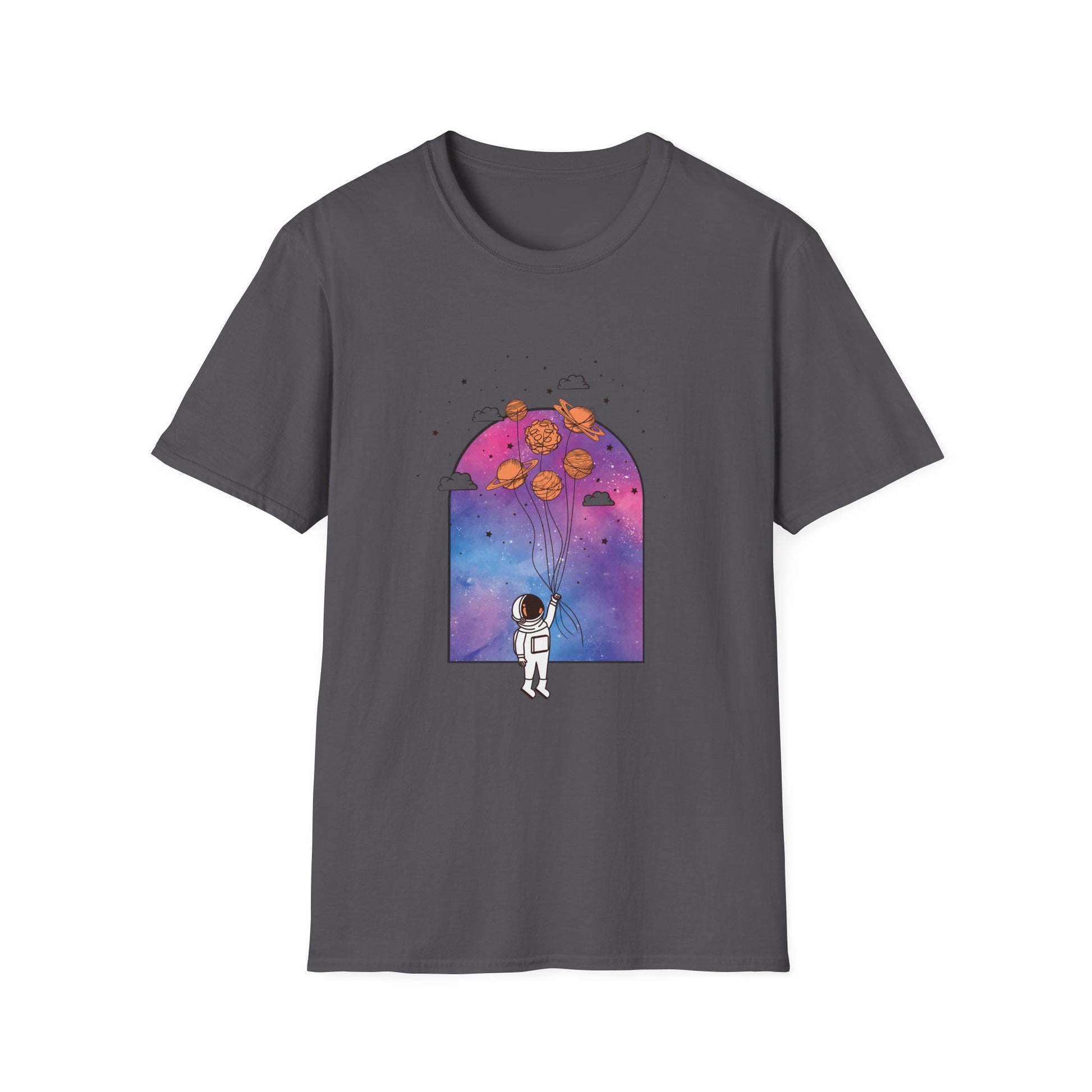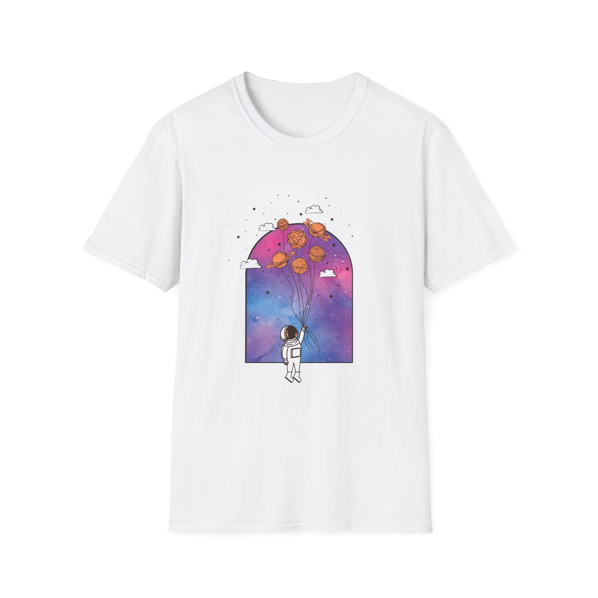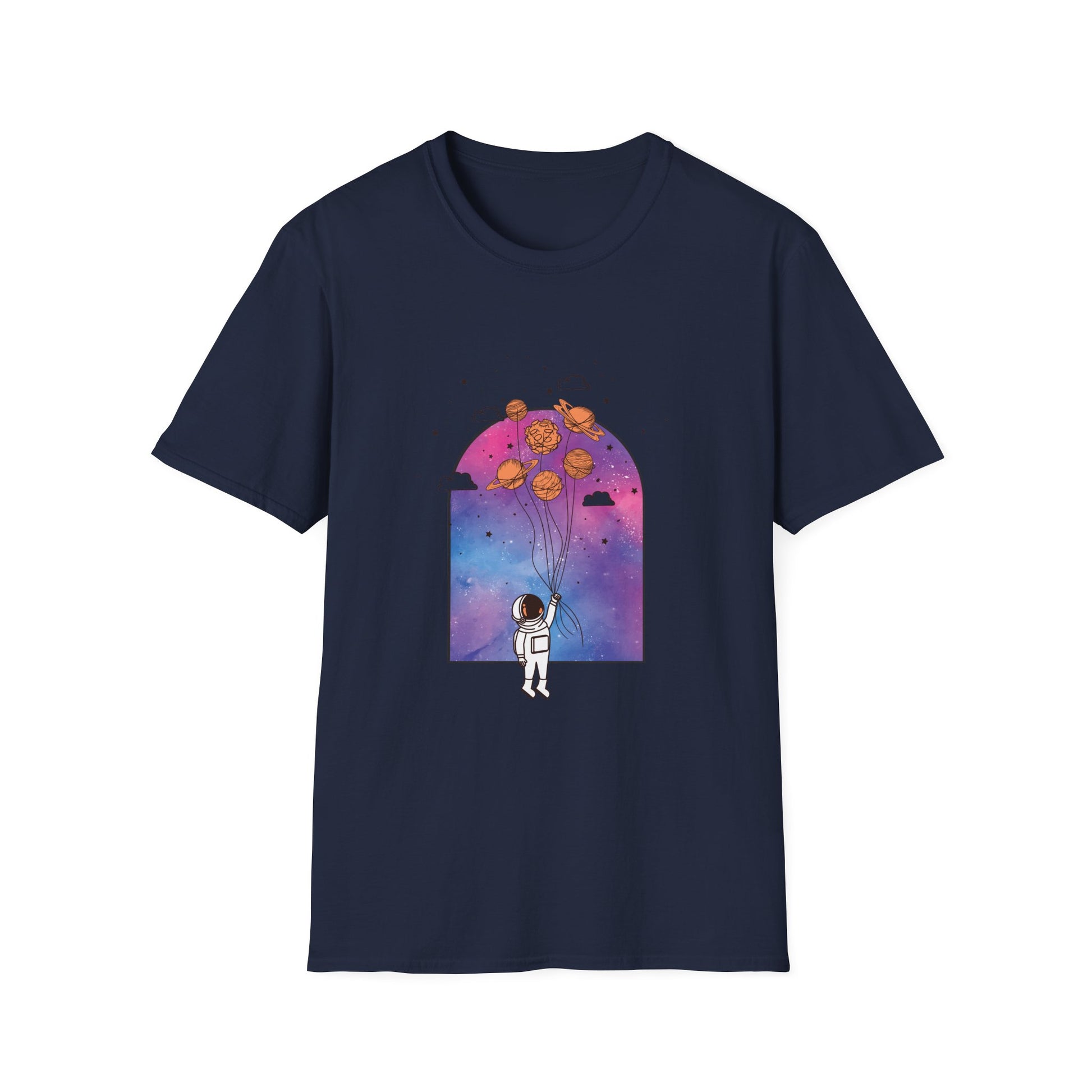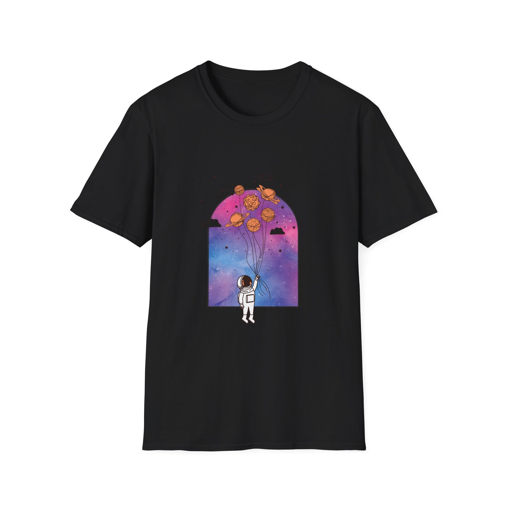 This T-Shirt features a whimsical design of planets on a string, giving off a playful and imaginative vibe. Perfect for astronomy enthusiasts or anyone who loves a unique twist on their wardrobe. Great for casual wear or as a conversation starter at science-themed parties or events.