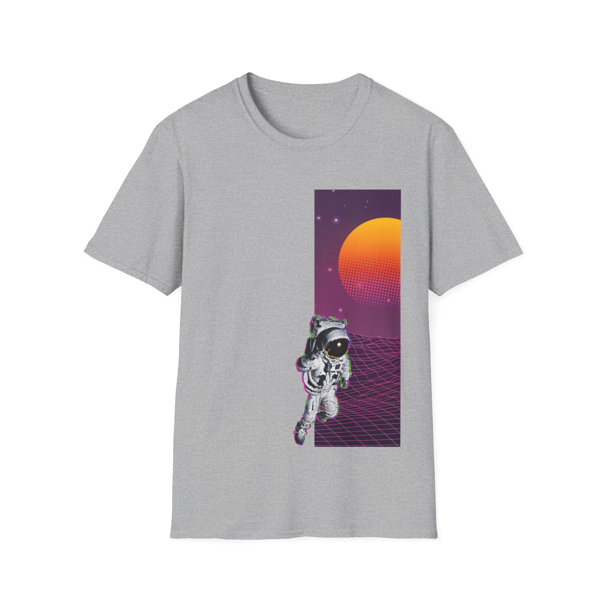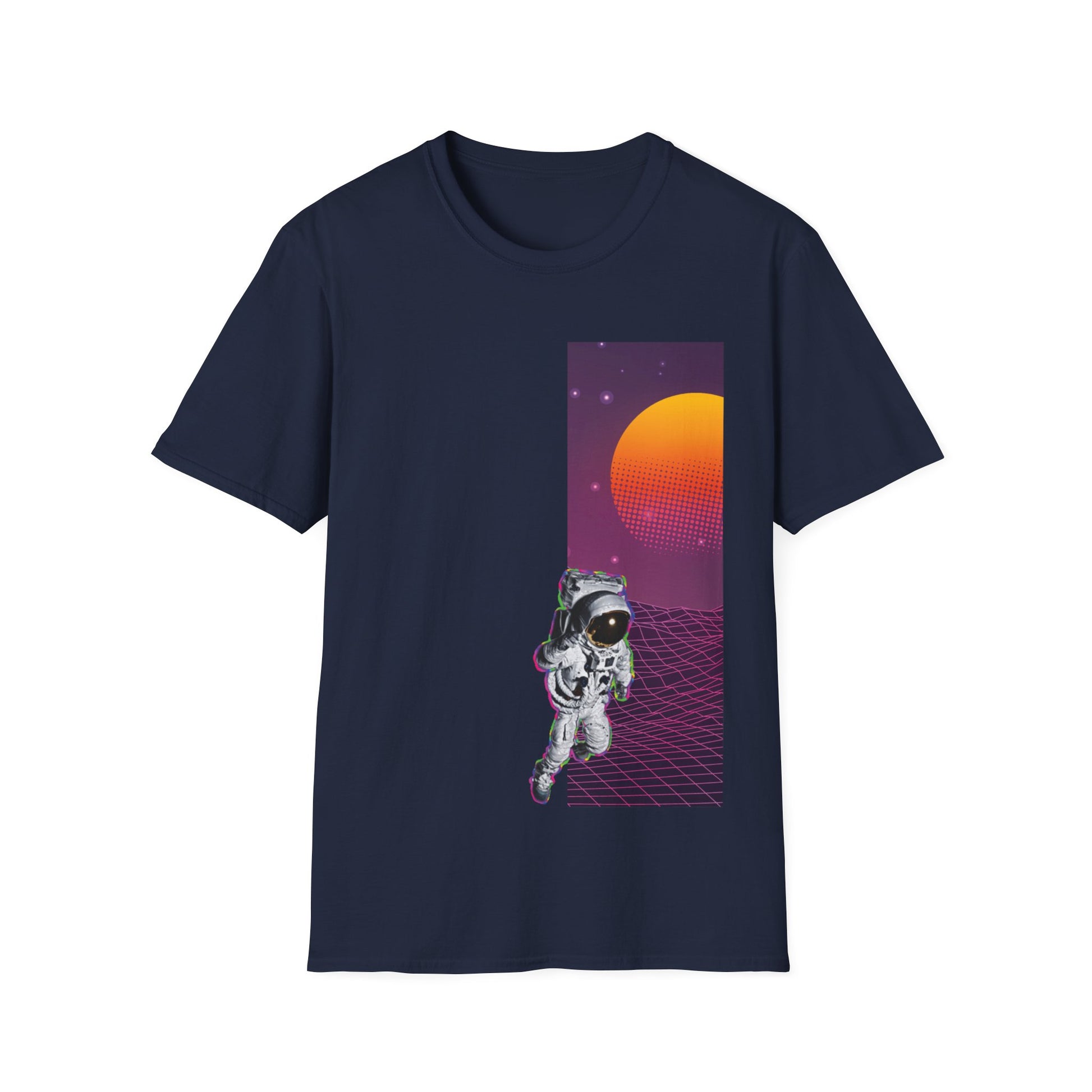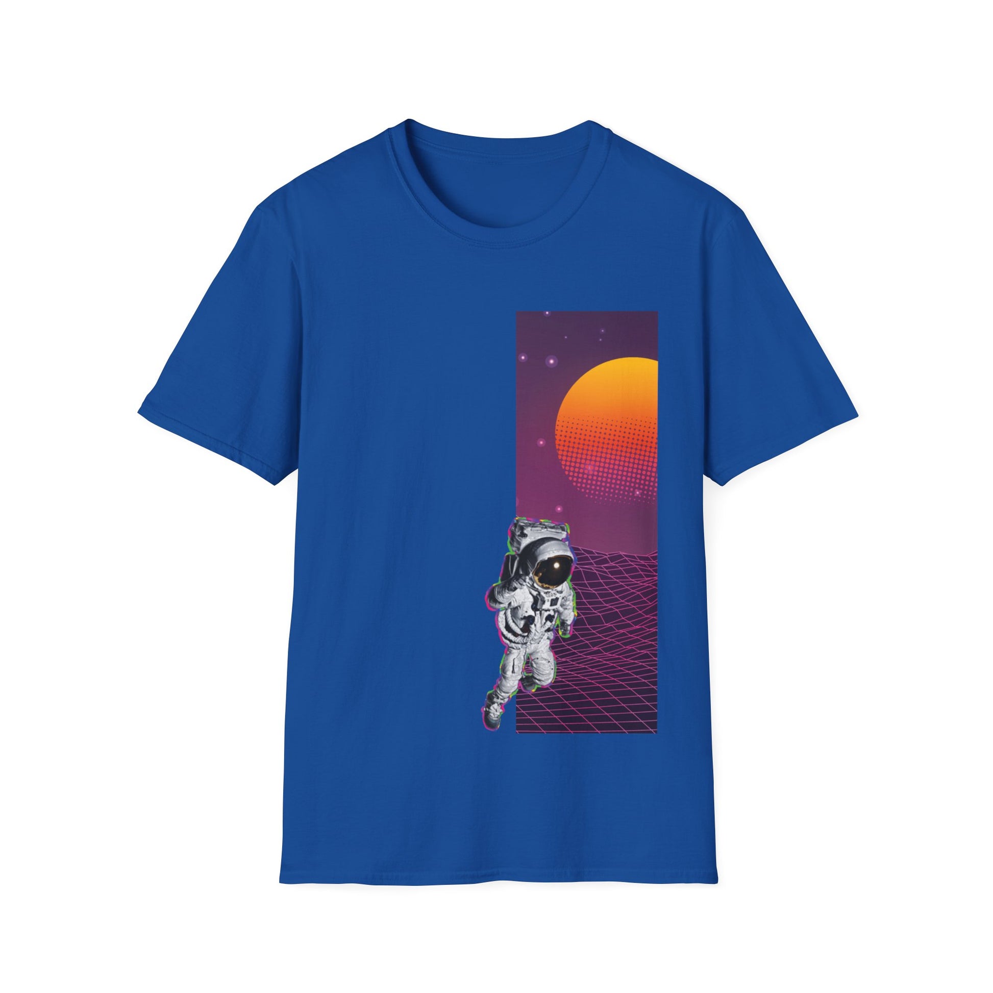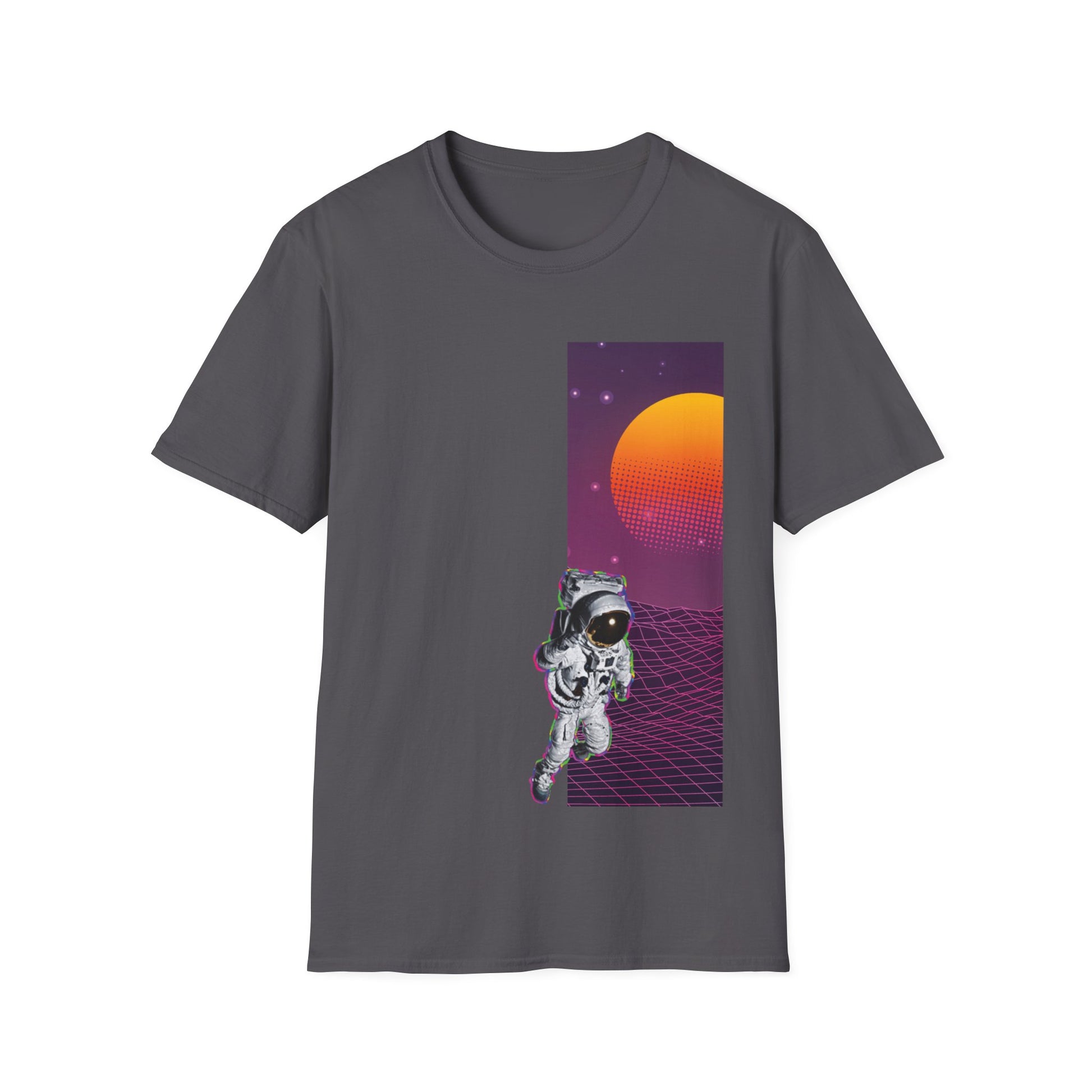 Spacewalk design T-shirt made from 100% ring-spun cotton, providing a lightweight and comfortable fit. The classic crew neckline and versatile style make it perfect for any occasion. Relevant for space enthusiasts and those looking for a unique and stylish tee. Ideal for casual wear, space-themed events, and science fiction fans.