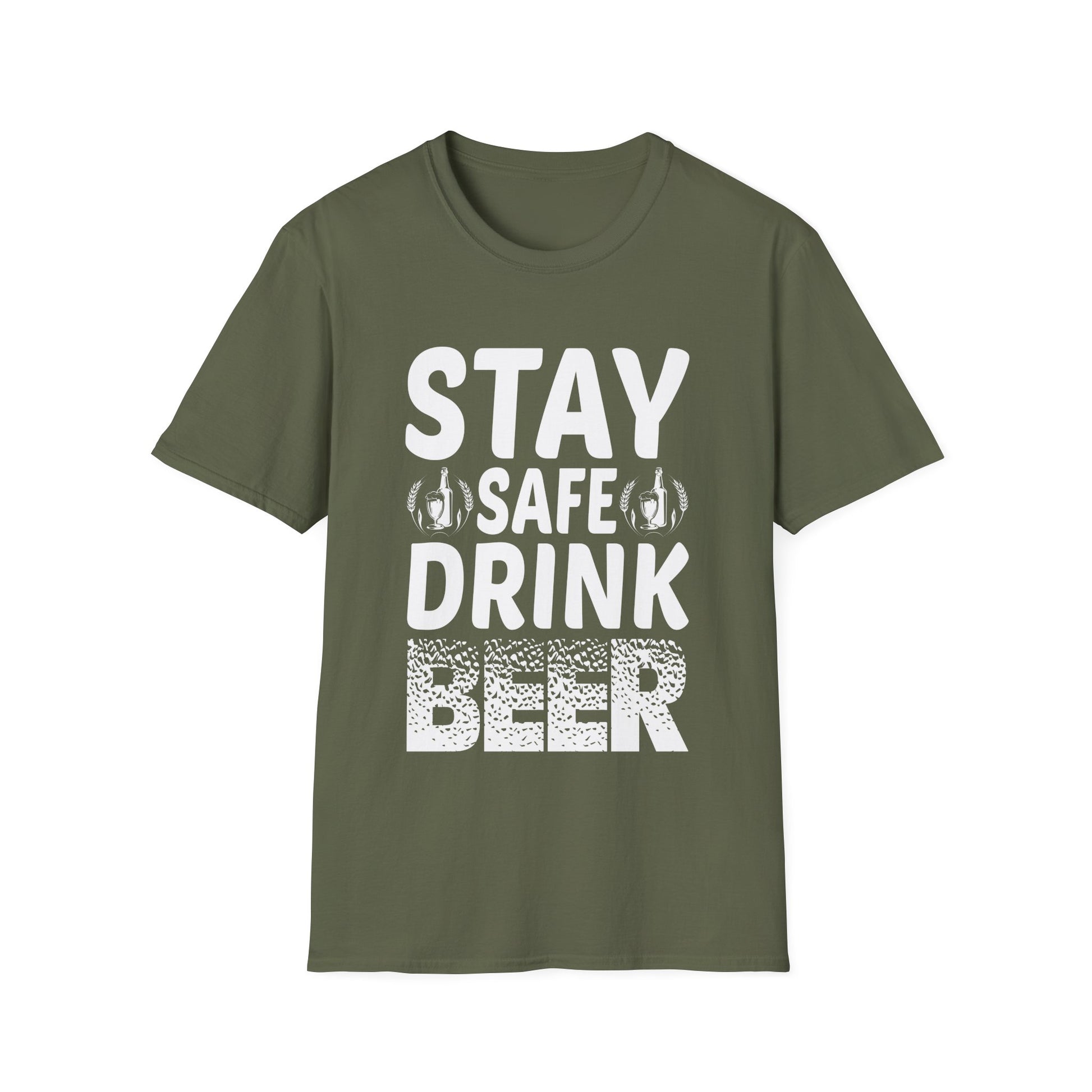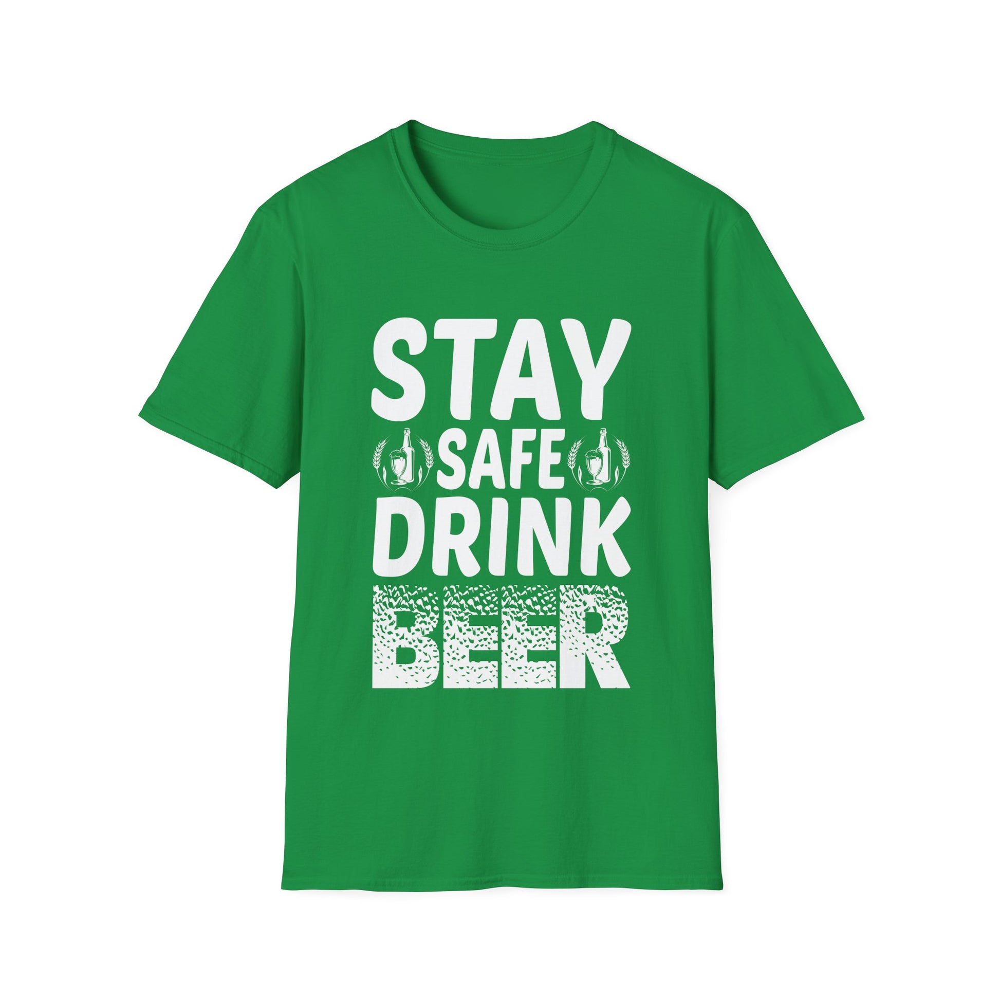This Stay Safe, Drink Beer T-Shirt gives off a relaxed and casual vibe, perfect for beer enthusiasts looking for a comfortable and stylish statement piece. It is relevant for holidays like St. Patrick's Day, Oktoberfest, and casual hangouts with friends.
