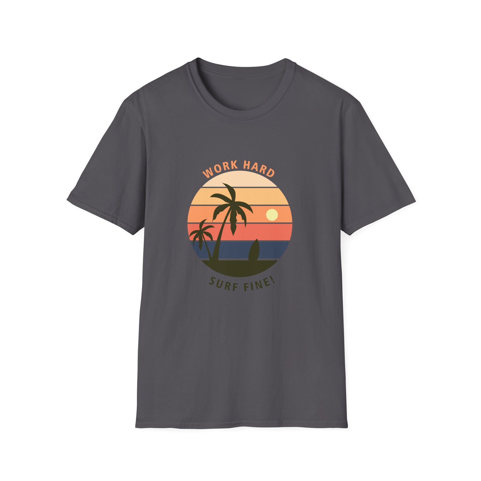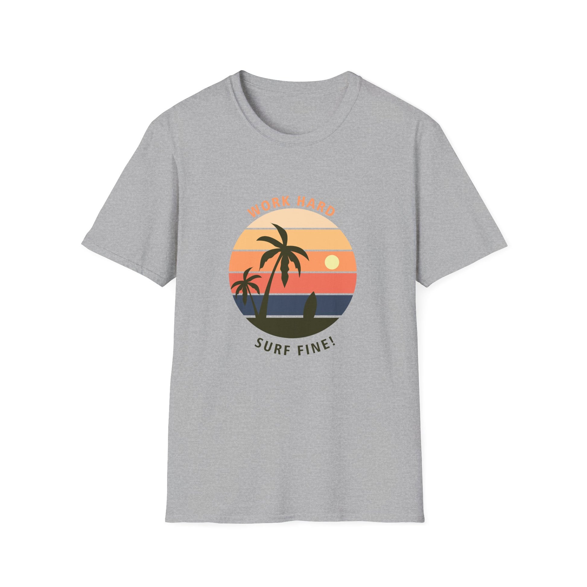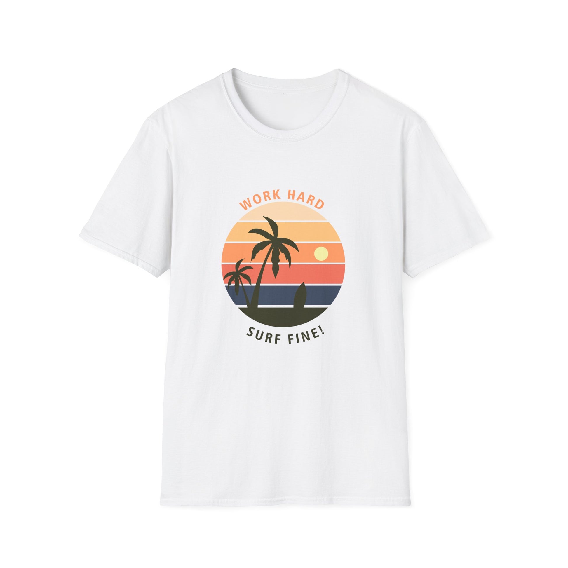 Surfer Unisex T-Shirt - 'Work Hard Surf Fine' Design